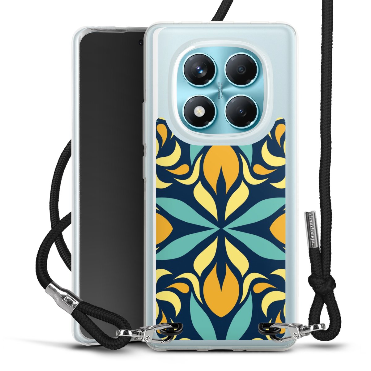 Keep your phone handy at all times, thanks to the flexible silicone case with a textile strap.
