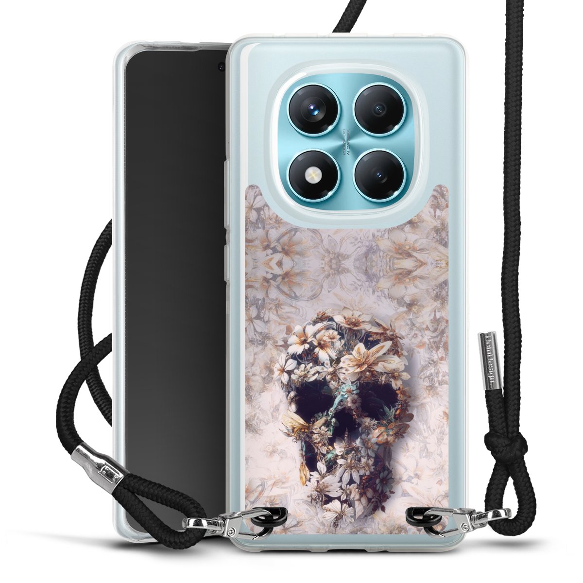 Keep your phone handy at all times, thanks to the flexible silicone case with a textile strap.