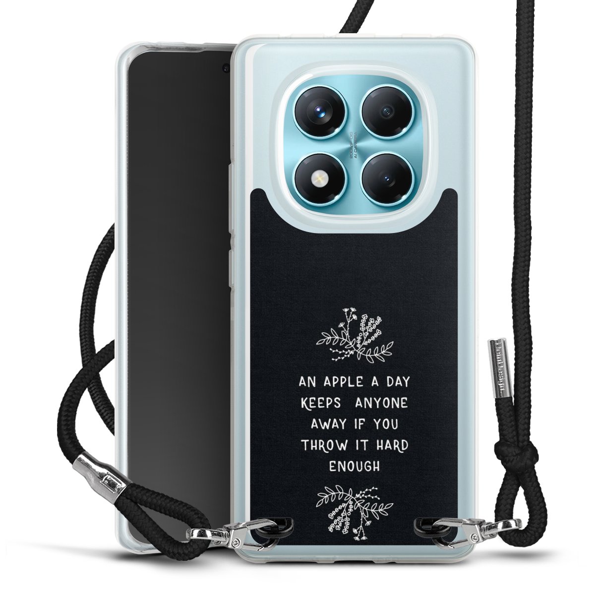 Keep your phone handy at all times, thanks to the flexible silicone case with a textile strap.