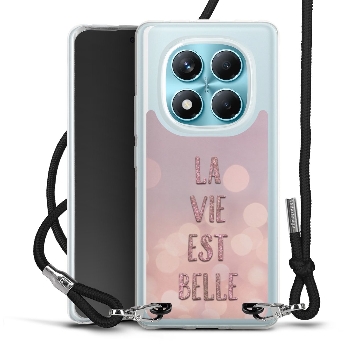 Keep your phone handy at all times, thanks to the flexible silicone case with a textile strap.