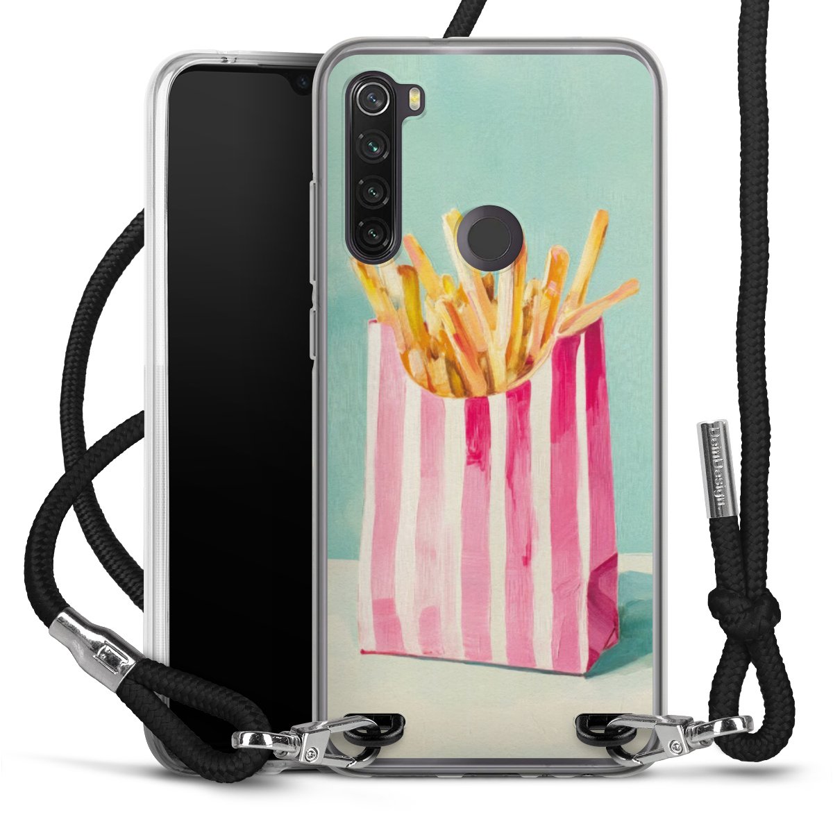 Keep your phone handy at all times, thanks to the flexible silicone case with a textile strap.