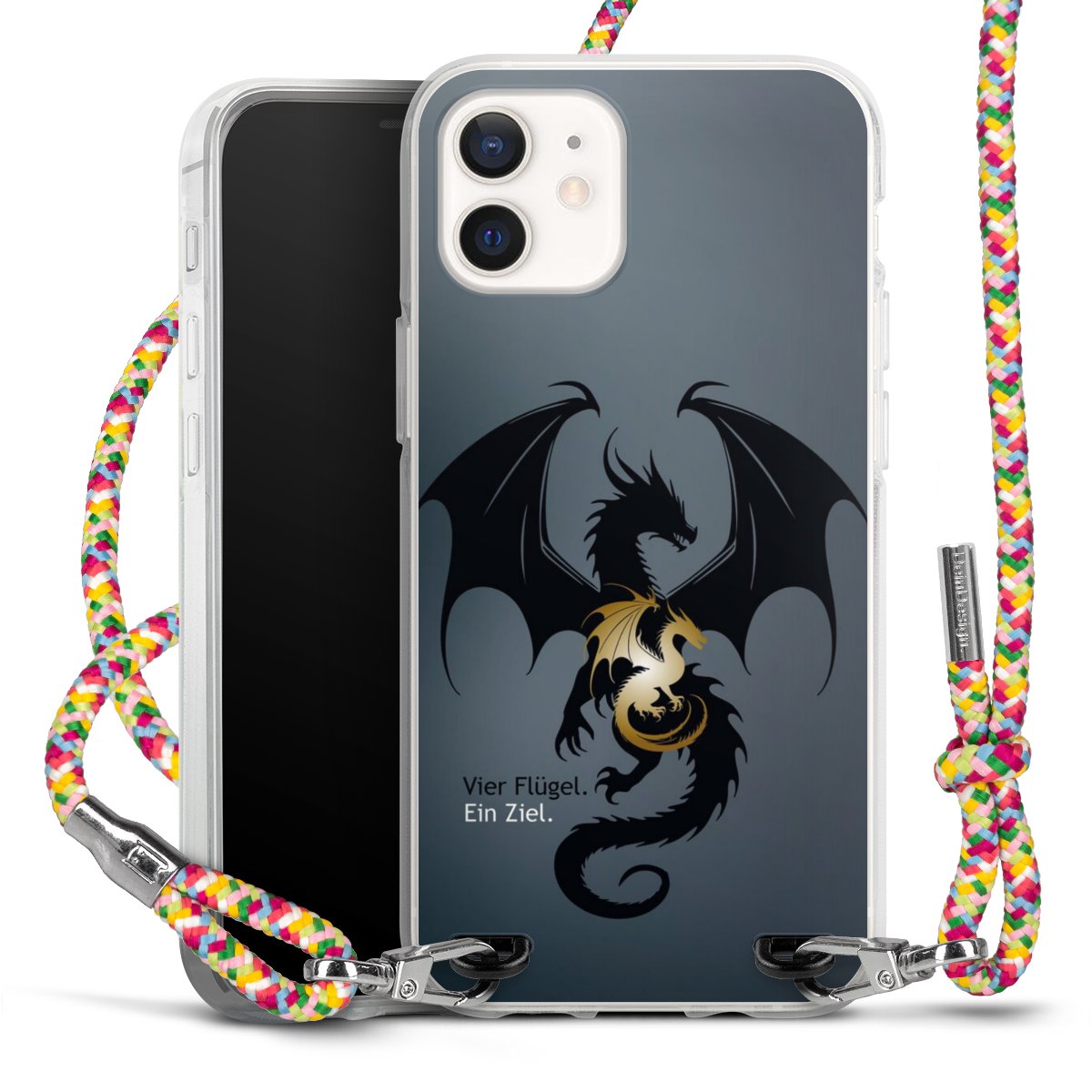 The flexible case is made from a highquality TPU material (thermoplastic Polyurethan). Thanks to its longlasting and break resistant characterisitcs, the case is flexible yet consistent in form and has a great grip and feel. The textile strap made from Polyester gives a chic yet casual accent allowing you to carry your phone like a bag or necklace - a practical gadget perfect for your next adventure. The textile strap is about 1.70 meters long and the length can easily be adjusted through the knots. Our Carry Case is available in Colourful, Mint-Camouflage, Very-Berry, Sahara-Sand and Sparkling-Neon. The ends of the textile strap are covered with metallic end caps to protect them against fraying.