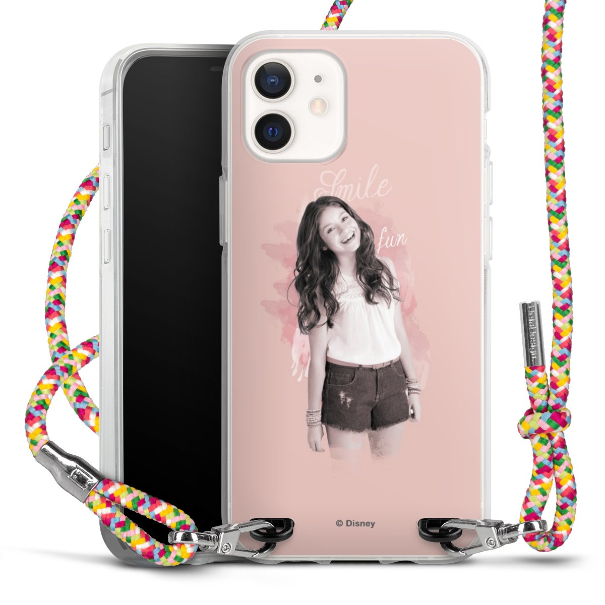 The flexible case is made from a highquality TPU material (thermoplastic Polyurethan). Thanks to its longlasting and break resistant characterisitcs, the case is flexible yet consistent in form and has a great grip and feel. The textile strap made from Polyester gives a chic yet casual accent allowing you to carry your phone like a bag or necklace - a practical gadget perfect for your next adventure. The textile strap is about 1.70 meters long and the length can easily be adjusted through the knots. Our Carry Case is available in Colourful, Mint-Camouflage, Very-Berry, Sahara-Sand and Sparkling-Neon. The ends of the textile strap are covered with metallic end caps to protect them against fraying.
