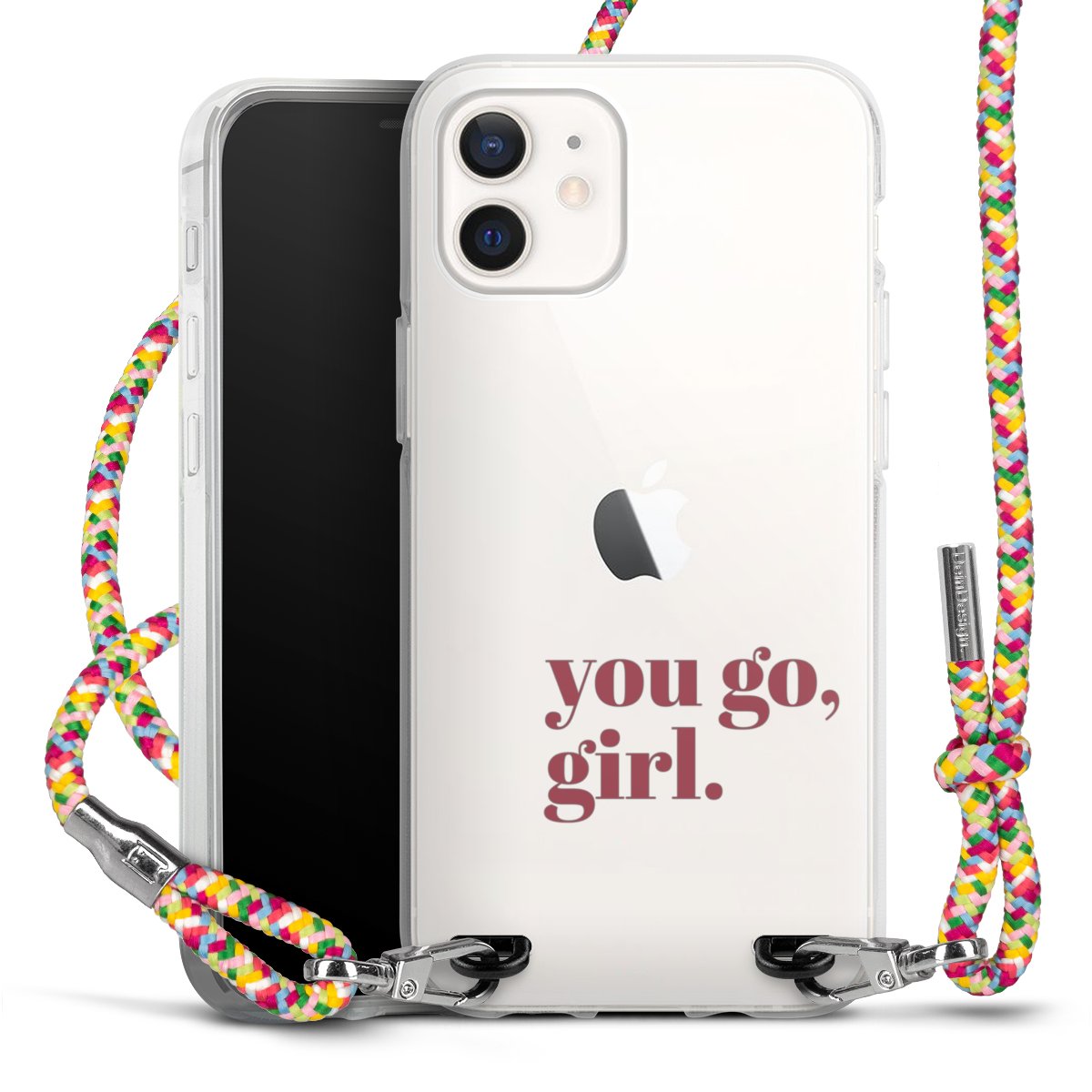 The flexible case is made from a highquality TPU material (thermoplastic Polyurethan). Thanks to its longlasting and break resistant characterisitcs, the case is flexible yet consistent in form and has a great grip and feel. The textile strap made from Polyester gives a chic yet casual accent allowing you to carry your phone like a bag or necklace - a practical gadget perfect for your next adventure. The textile strap is about 1.70 meters long and the length can easily be adjusted through the knots. Our Carry Case is available in Colourful, Mint-Camouflage, Very-Berry, Sahara-Sand and Sparkling-Neon. The ends of the textile strap are covered with metallic end caps to protect them against fraying.