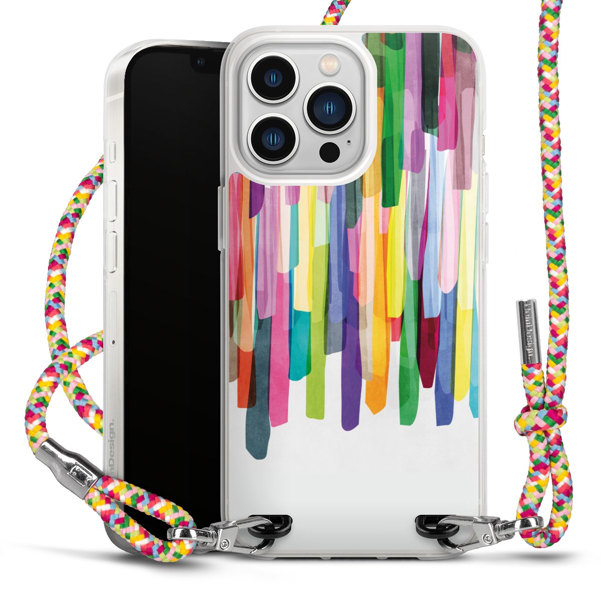 The flexible case is made from a highquality TPU material (thermoplastic Polyurethan). Thanks to its longlasting and break resistant characterisitcs, the case is flexible yet consistent in form and has a great grip and feel. The textile strap made from Polyester gives a chic yet casual accent allowing you to carry your phone like a bag or necklace - a practical gadget perfect for your next adventure. The textile strap is about 1.70 meters long and the length can easily be adjusted through the knots. Our Carry Case is available in Colourful, Mint-Camouflage, Very-Berry, Sahara-Sand and Sparkling-Neon. The ends of the textile strap are covered with metallic end caps to protect them against fraying.