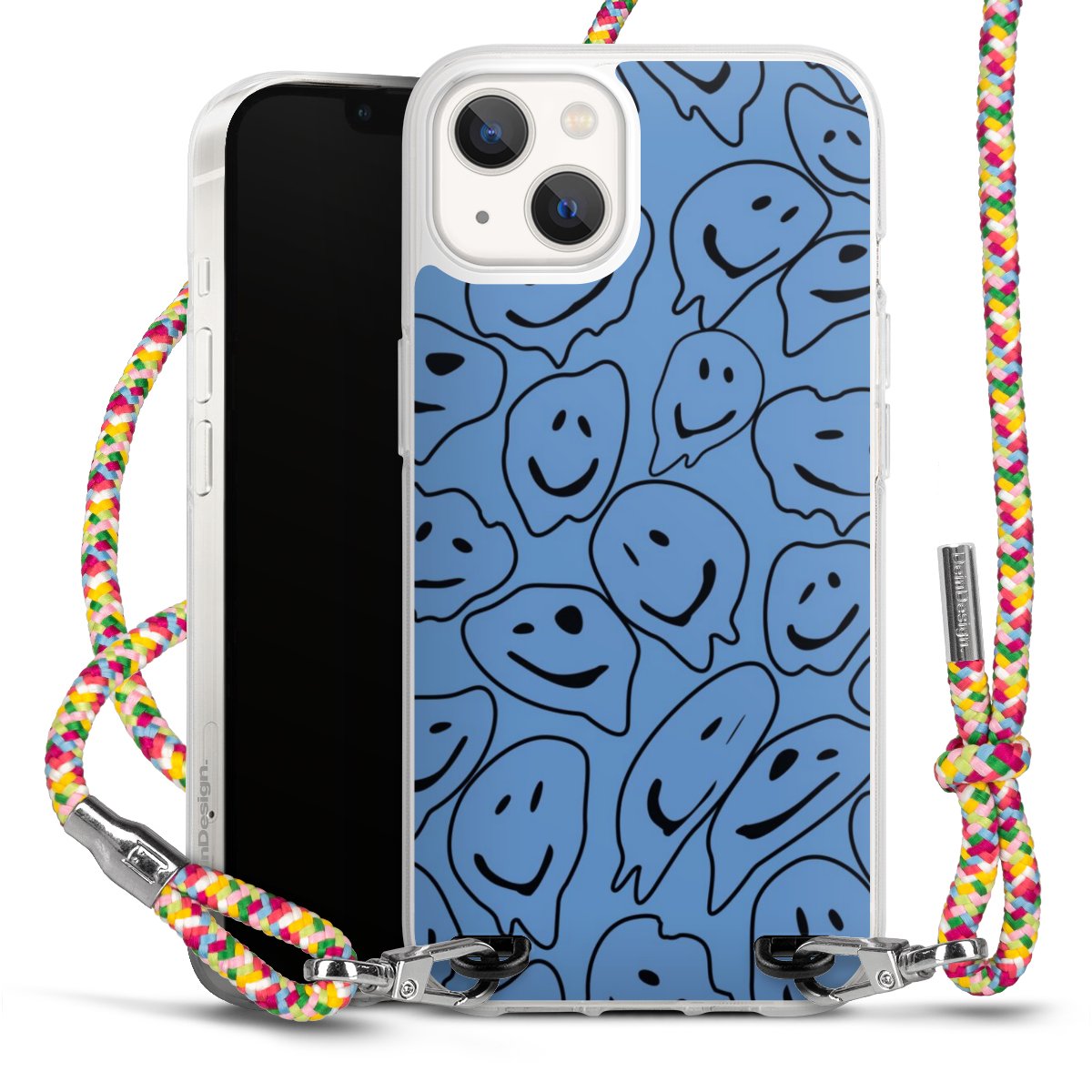 The flexible case is made from a highquality TPU material (thermoplastic Polyurethan). Thanks to its longlasting and break resistant characterisitcs, the case is flexible yet consistent in form and has a great grip and feel. The textile strap made from Polyester gives a chic yet casual accent allowing you to carry your phone like a bag or necklace - a practical gadget perfect for your next adventure. The textile strap is about 1.70 meters long and the length can easily be adjusted through the knots. Our Carry Case is available in Colourful, Mint-Camouflage, Very-Berry, Sahara-Sand and Sparkling-Neon. The ends of the textile strap are covered with metallic end caps to protect them against fraying.