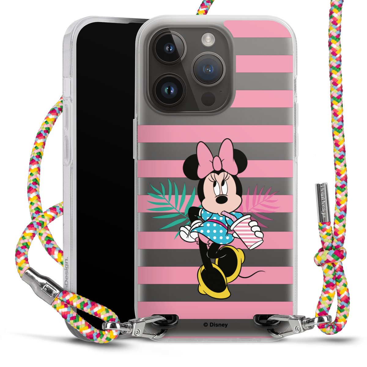 The flexible case is made from a highquality TPU material (thermoplastic Polyurethan). Thanks to its longlasting and break resistant characterisitcs, the case is flexible yet consistent in form and has a great grip and feel. The textile strap made from Polyester gives a chic yet casual accent allowing you to carry your phone like a bag or necklace - a practical gadget perfect for your next adventure. The textile strap is about 1.70 meters long and the length can easily be adjusted through the knots. Our Carry Case is available in Colourful, Mint-Camouflage, Very-Berry, Sahara-Sand and Sparkling-Neon. The ends of the textile strap are covered with metallic end caps to protect them against fraying.
