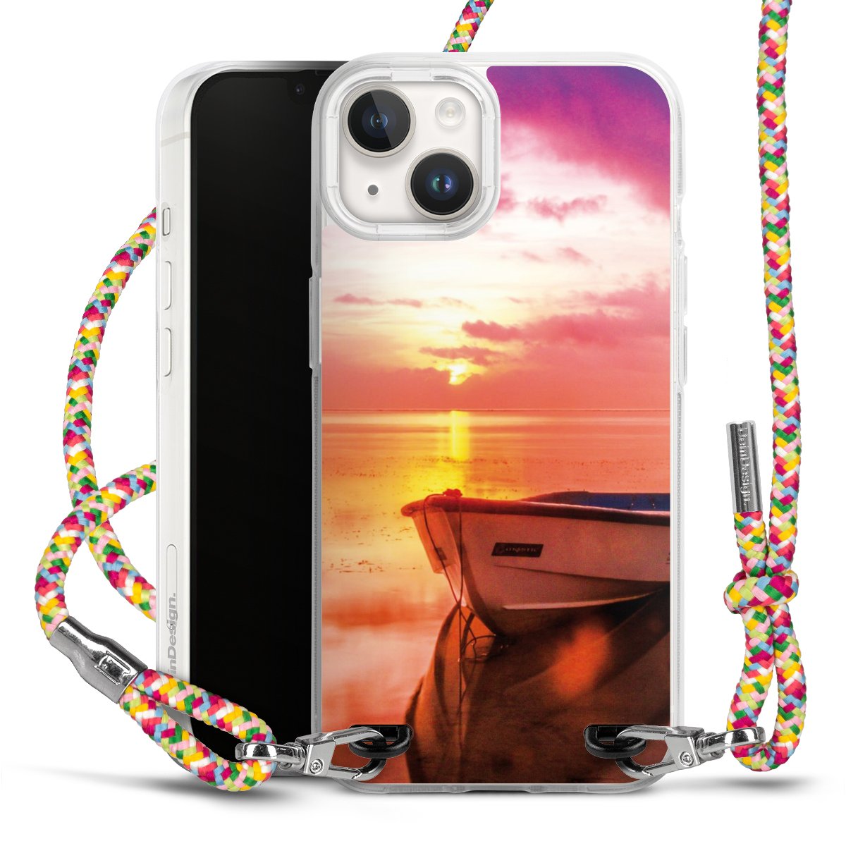 The flexible case is made from a highquality TPU material (thermoplastic Polyurethan). Thanks to its longlasting and break resistant characterisitcs, the case is flexible yet consistent in form and has a great grip and feel. The textile strap made from Polyester gives a chic yet casual accent allowing you to carry your phone like a bag or necklace - a practical gadget perfect for your next adventure. The textile strap is about 1.70 meters long and the length can easily be adjusted through the knots. Our Carry Case is available in Colourful, Mint-Camouflage, Very-Berry, Sahara-Sand and Sparkling-Neon. The ends of the textile strap are covered with metallic end caps to protect them against fraying.