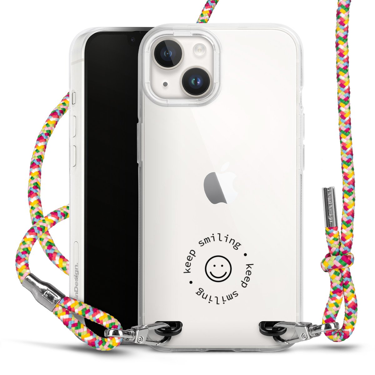 The flexible case is made from a highquality TPU material (thermoplastic Polyurethan). Thanks to its longlasting and break resistant characterisitcs, the case is flexible yet consistent in form and has a great grip and feel. The textile strap made from Polyester gives a chic yet casual accent allowing you to carry your phone like a bag or necklace - a practical gadget perfect for your next adventure. The textile strap is about 1.70 meters long and the length can easily be adjusted through the knots. Our Carry Case is available in Colourful, Mint-Camouflage, Very-Berry, Sahara-Sand and Sparkling-Neon. The ends of the textile strap are covered with metallic end caps to protect them against fraying.