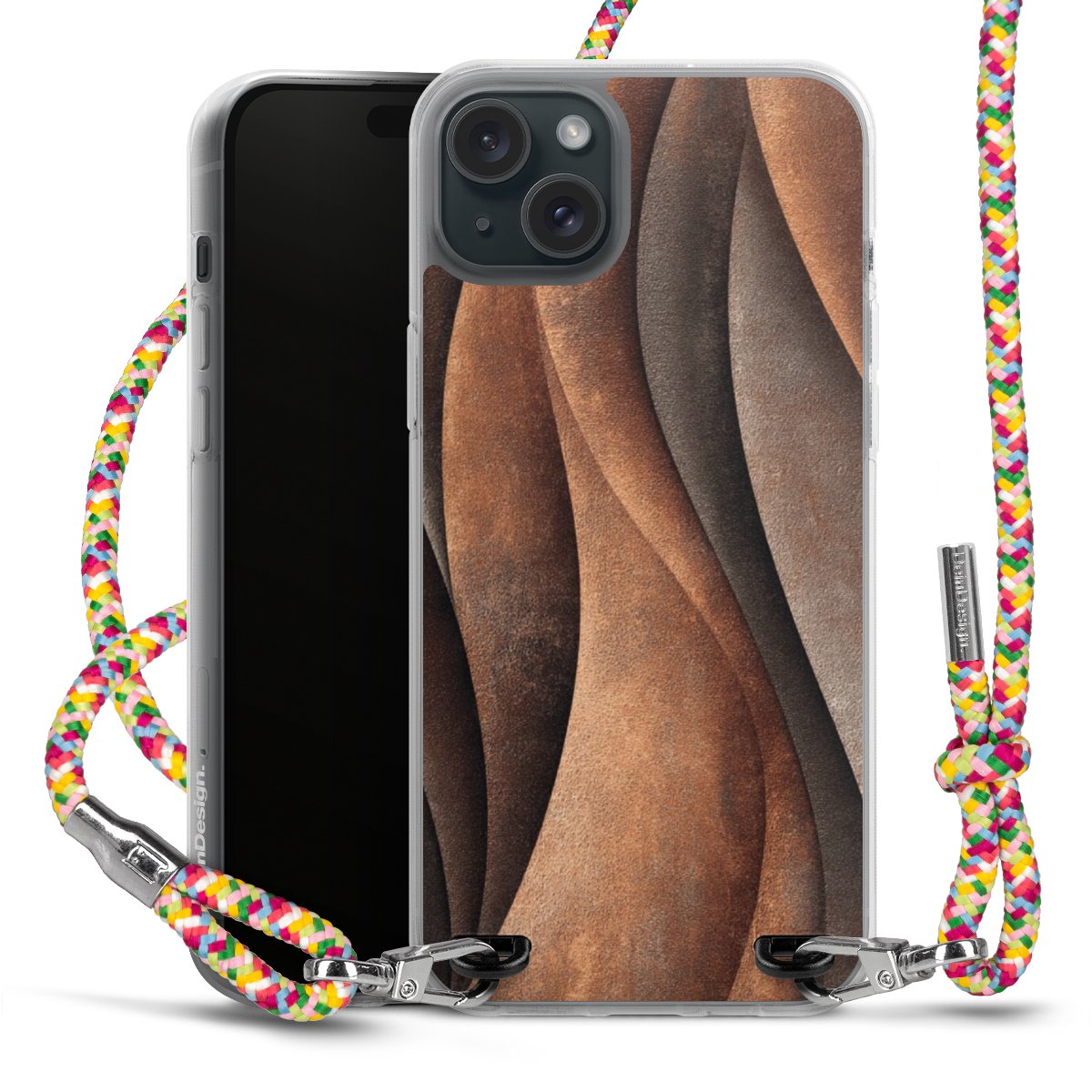 The flexible case is made from a highquality TPU material (thermoplastic Polyurethan). Thanks to its longlasting and break resistant characterisitcs, the case is flexible yet consistent in form and has a great grip and feel. The textile strap made from Polyester gives a chic yet casual accent allowing you to carry your phone like a bag or necklace - a practical gadget perfect for your next adventure. The textile strap is about 1.70 meters long and the length can easily be adjusted through the knots. Our Carry Case is available in Colourful, Mint-Camouflage, Very-Berry, Sahara-Sand and Sparkling-Neon. The ends of the textile strap are covered with metallic end caps to protect them against fraying.