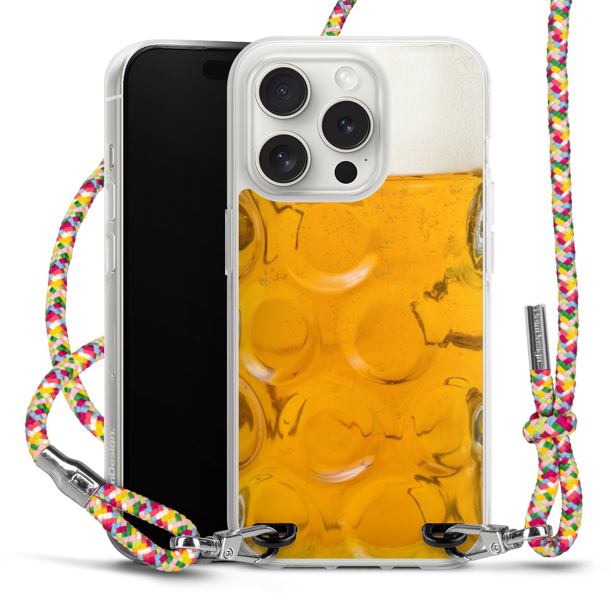 The flexible case is made from a highquality TPU material (thermoplastic Polyurethan). Thanks to its longlasting and break resistant characterisitcs, the case is flexible yet consistent in form and has a great grip and feel. The textile strap made from Polyester gives a chic yet casual accent allowing you to carry your phone like a bag or necklace - a practical gadget perfect for your next adventure. The textile strap is about 1.70 meters long and the length can easily be adjusted through the knots. Our Carry Case is available in Colourful, Mint-Camouflage, Very-Berry, Sahara-Sand and Sparkling-Neon. The ends of the textile strap are covered with metallic end caps to protect them against fraying.