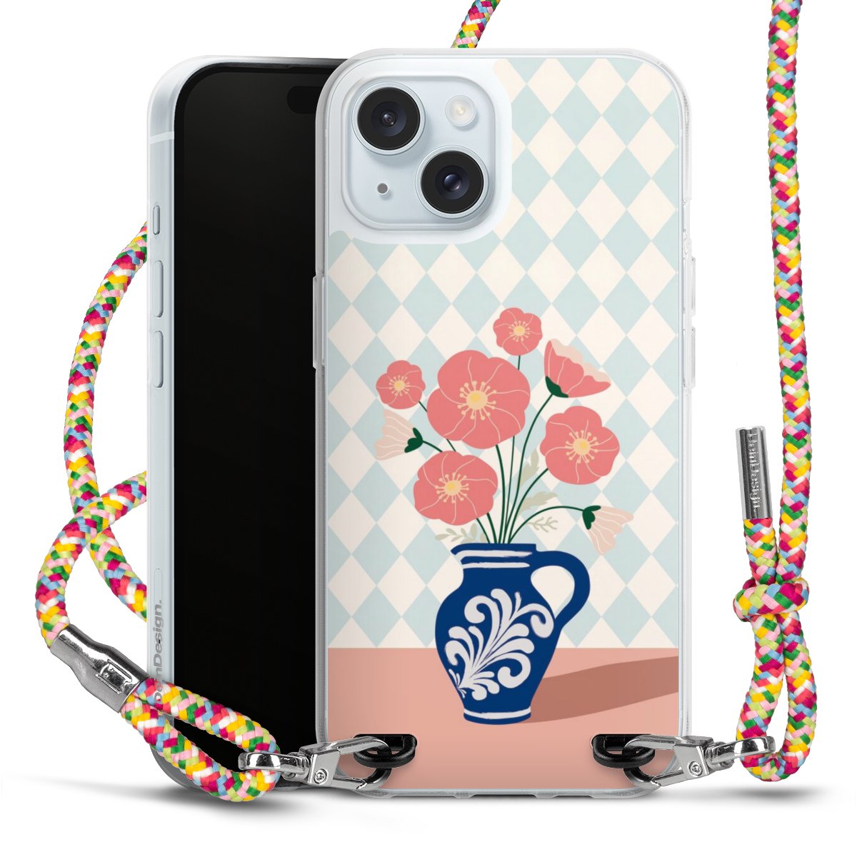 The flexible case is made from a highquality TPU material (thermoplastic Polyurethan). Thanks to its longlasting and break resistant characterisitcs, the case is flexible yet consistent in form and has a great grip and feel. The textile strap made from Polyester gives a chic yet casual accent allowing you to carry your phone like a bag or necklace - a practical gadget perfect for your next adventure. The textile strap is about 1.70 meters long and the length can easily be adjusted through the knots. Our Carry Case is available in Colourful, Mint-Camouflage, Very-Berry, Sahara-Sand and Sparkling-Neon. The ends of the textile strap are covered with metallic end caps to protect them against fraying.