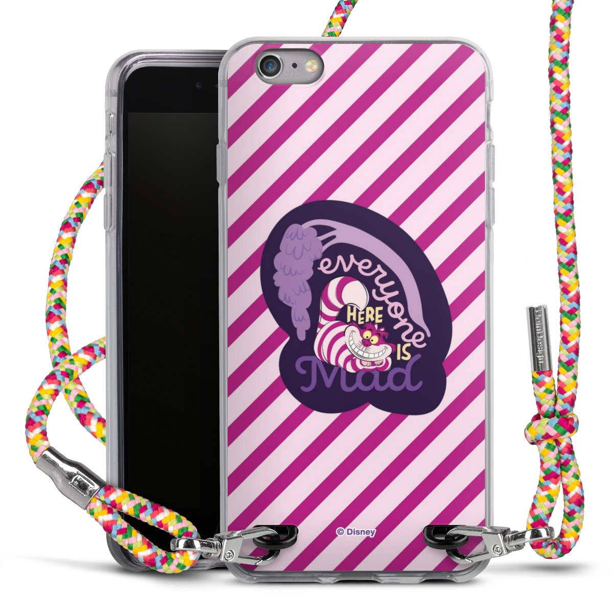 The flexible case is made from a highquality TPU material (thermoplastic Polyurethan). Thanks to its longlasting and break resistant characterisitcs, the case is flexible yet consistent in form and has a great grip and feel. The textile strap made from Polyester gives a chic yet casual accent allowing you to carry your phone like a bag or necklace - a practical gadget perfect for your next adventure. The textile strap is about 1.70 meters long and the length can easily be adjusted through the knots. Our Carry Case is available in Colourful, Mint-Camouflage, Very-Berry, Sahara-Sand and Sparkling-Neon. The ends of the textile strap are covered with metallic end caps to protect them against fraying.