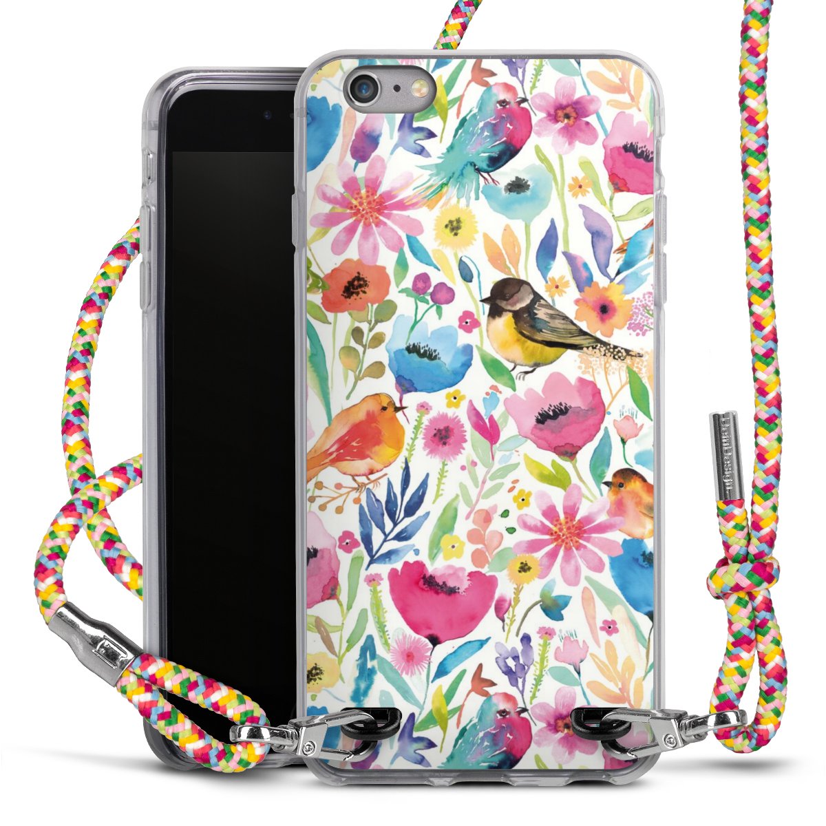 The flexible case is made from a highquality TPU material (thermoplastic Polyurethan). Thanks to its longlasting and break resistant characterisitcs, the case is flexible yet consistent in form and has a great grip and feel. The textile strap made from Polyester gives a chic yet casual accent allowing you to carry your phone like a bag or necklace - a practical gadget perfect for your next adventure. The textile strap is about 1.70 meters long and the length can easily be adjusted through the knots. Our Carry Case is available in Colourful, Mint-Camouflage, Very-Berry, Sahara-Sand and Sparkling-Neon. The ends of the textile strap are covered with metallic end caps to protect them against fraying.