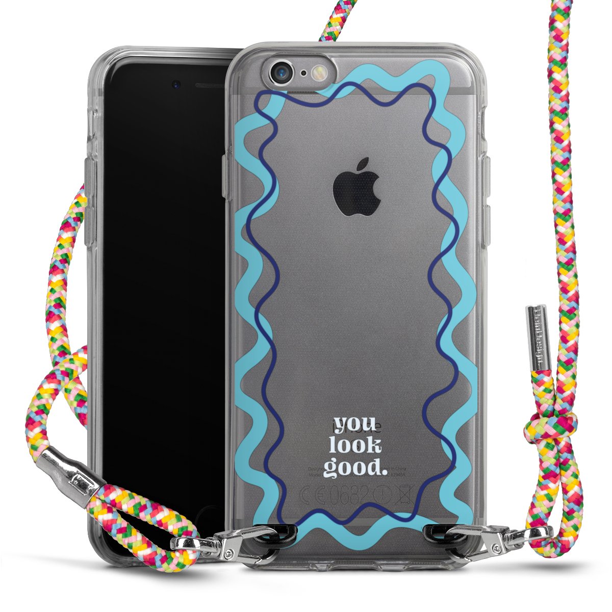 The flexible case is made from a highquality TPU material (thermoplastic Polyurethan). Thanks to its longlasting and break resistant characterisitcs, the case is flexible yet consistent in form and has a great grip and feel. The textile strap made from Polyester gives a chic yet casual accent allowing you to carry your phone like a bag or necklace - a practical gadget perfect for your next adventure. The textile strap is about 1.70 meters long and the length can easily be adjusted through the knots. Our Carry Case is available in Colourful, Mint-Camouflage, Very-Berry, Sahara-Sand and Sparkling-Neon. The ends of the textile strap are covered with metallic end caps to protect them against fraying.