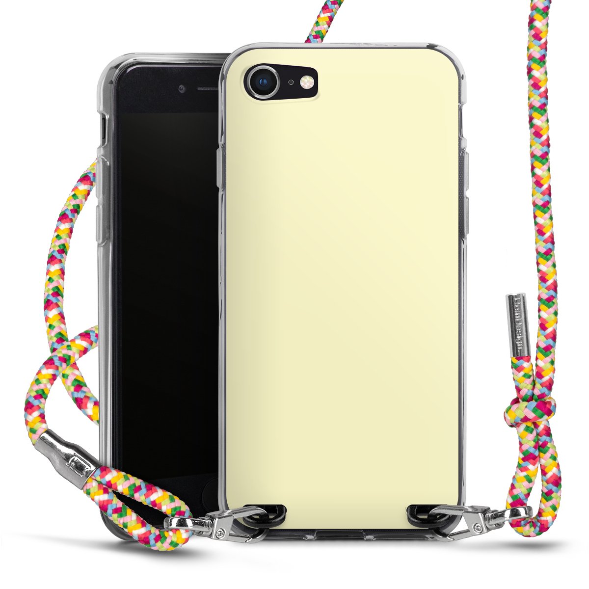 The flexible case is made from a highquality TPU material (thermoplastic Polyurethan). Thanks to its longlasting and break resistant characterisitcs, the case is flexible yet consistent in form and has a great grip and feel. The textile strap made from Polyester gives a chic yet casual accent allowing you to carry your phone like a bag or necklace - a practical gadget perfect for your next adventure. The textile strap is about 1.70 meters long and the length can easily be adjusted through the knots. Our Carry Case is available in Colourful, Mint-Camouflage, Very-Berry, Sahara-Sand and Sparkling-Neon. The ends of the textile strap are covered with metallic end caps to protect them against fraying.