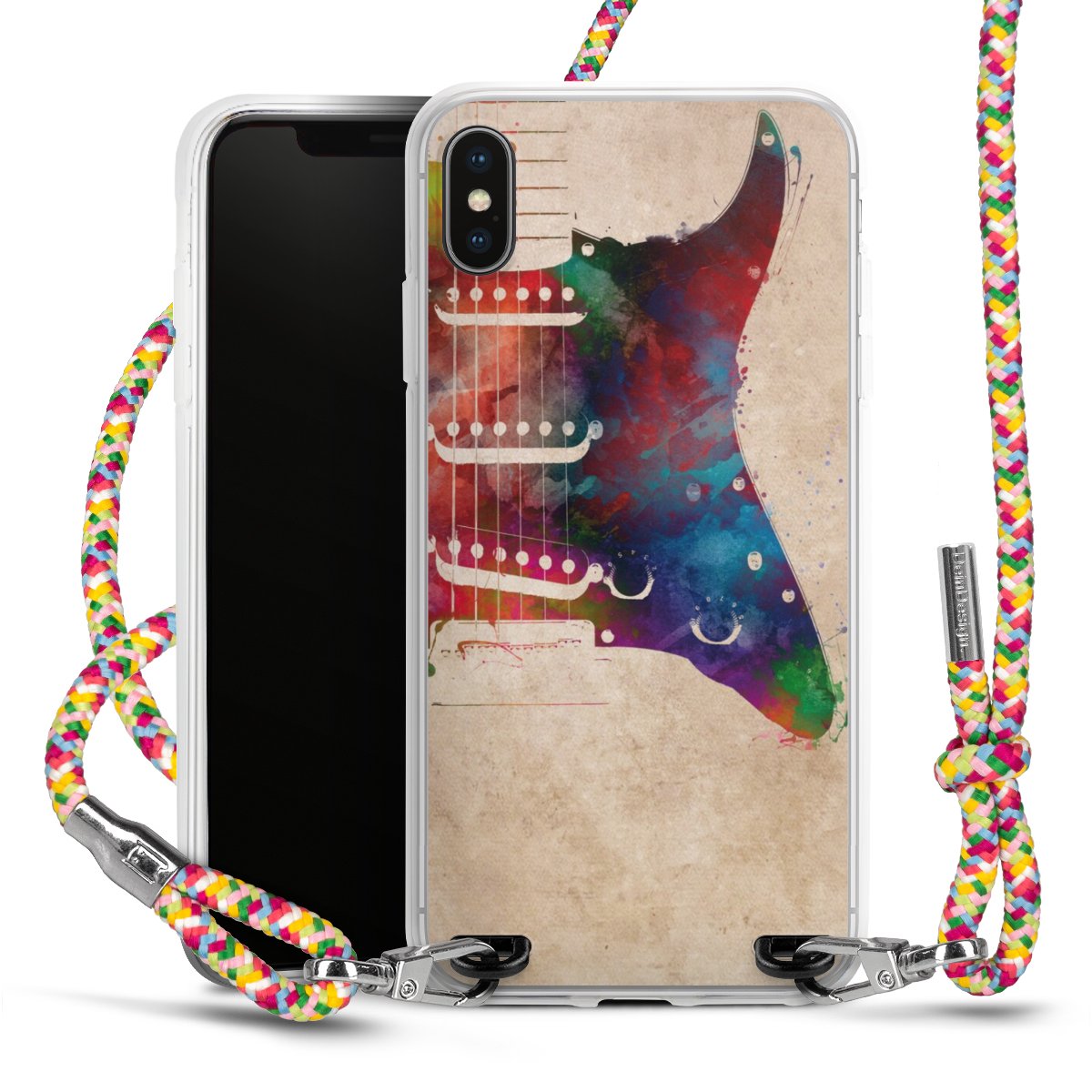 The flexible case is made from a highquality TPU material (thermoplastic Polyurethan). Thanks to its longlasting and break resistant characterisitcs, the case is flexible yet consistent in form and has a great grip and feel. The textile strap made from Polyester gives a chic yet casual accent allowing you to carry your phone like a bag or necklace - a practical gadget perfect for your next adventure. The textile strap is about 1.70 meters long and the length can easily be adjusted through the knots. Our Carry Case is available in Colourful, Mint-Camouflage, Very-Berry, Sahara-Sand and Sparkling-Neon. The ends of the textile strap are covered with metallic end caps to protect them against fraying.