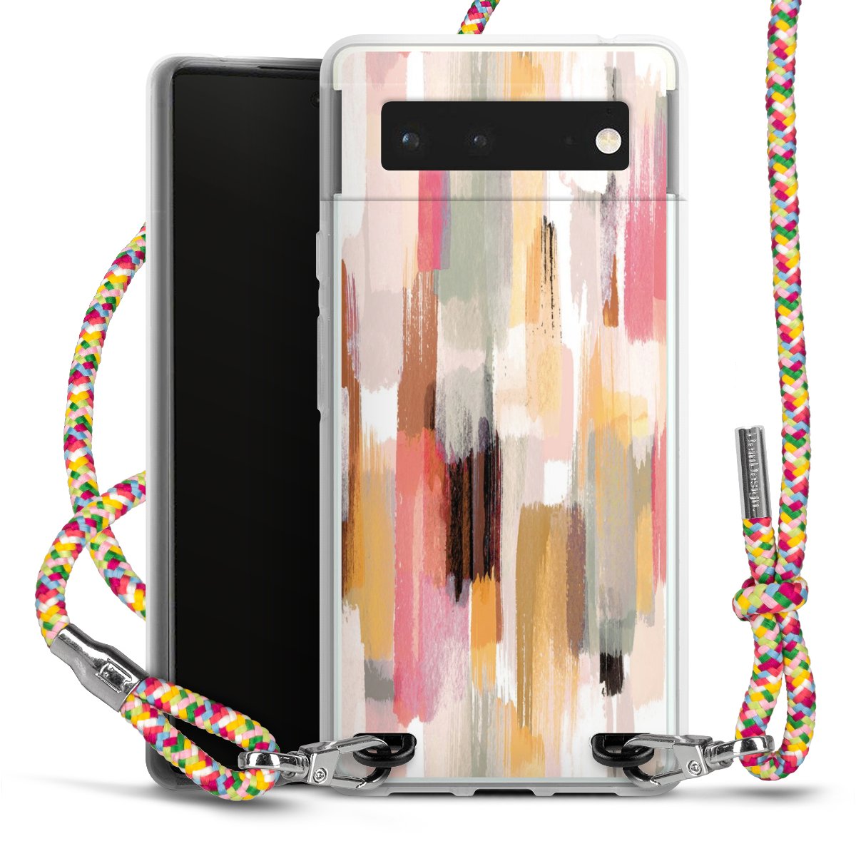 The flexible case is made from a highquality TPU material (thermoplastic Polyurethan). Thanks to its longlasting and break resistant characterisitcs, the case is flexible yet consistent in form and has a great grip and feel. The textile strap made from Polyester gives a chic yet casual accent allowing you to carry your phone like a bag or necklace - a practical gadget perfect for your next adventure. The textile strap is about 1.70 meters long and the length can easily be adjusted through the knots. Our Carry Case is available in Colourful, Mint-Camouflage, Very-Berry, Sahara-Sand and Sparkling-Neon. The ends of the textile strap are covered with metallic end caps to protect them against fraying.