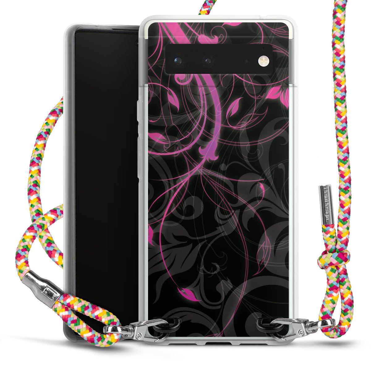 The flexible case is made from a highquality TPU material (thermoplastic Polyurethan). Thanks to its longlasting and break resistant characterisitcs, the case is flexible yet consistent in form and has a great grip and feel. The textile strap made from Polyester gives a chic yet casual accent allowing you to carry your phone like a bag or necklace - a practical gadget perfect for your next adventure. The textile strap is about 1.70 meters long and the length can easily be adjusted through the knots. Our Carry Case is available in Colourful, Mint-Camouflage, Very-Berry, Sahara-Sand and Sparkling-Neon. The ends of the textile strap are covered with metallic end caps to protect them against fraying.