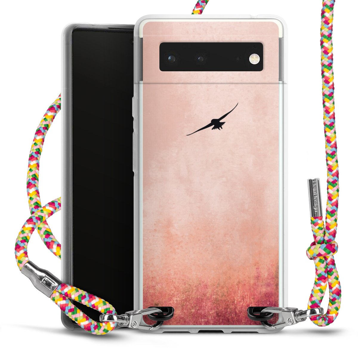 The flexible case is made from a highquality TPU material (thermoplastic Polyurethan). Thanks to its longlasting and break resistant characterisitcs, the case is flexible yet consistent in form and has a great grip and feel. The textile strap made from Polyester gives a chic yet casual accent allowing you to carry your phone like a bag or necklace - a practical gadget perfect for your next adventure. The textile strap is about 1.70 meters long and the length can easily be adjusted through the knots. Our Carry Case is available in Colourful, Mint-Camouflage, Very-Berry, Sahara-Sand and Sparkling-Neon. The ends of the textile strap are covered with metallic end caps to protect them against fraying.