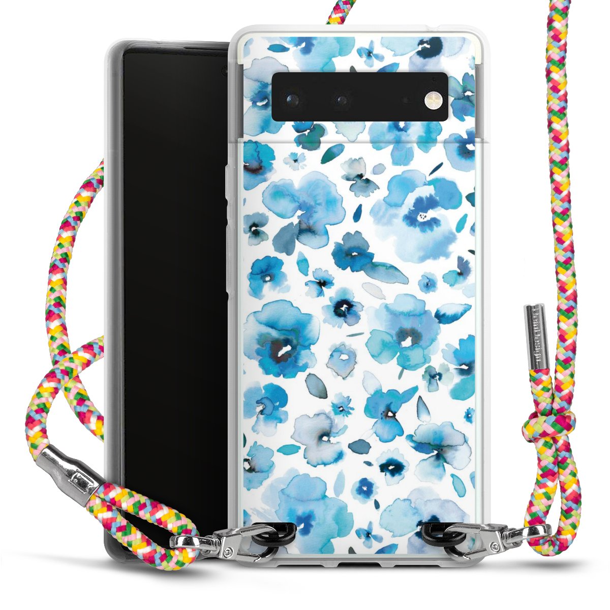 The flexible case is made from a highquality TPU material (thermoplastic Polyurethan). Thanks to its longlasting and break resistant characterisitcs, the case is flexible yet consistent in form and has a great grip and feel. The textile strap made from Polyester gives a chic yet casual accent allowing you to carry your phone like a bag or necklace - a practical gadget perfect for your next adventure. The textile strap is about 1.70 meters long and the length can easily be adjusted through the knots. Our Carry Case is available in Colourful, Mint-Camouflage, Very-Berry, Sahara-Sand and Sparkling-Neon. The ends of the textile strap are covered with metallic end caps to protect them against fraying.