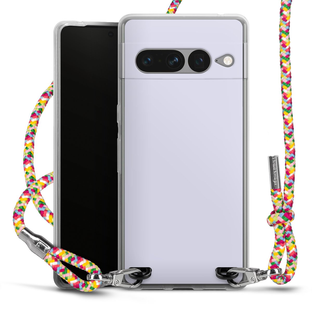The flexible case is made from a highquality TPU material (thermoplastic Polyurethan). Thanks to its longlasting and break resistant characterisitcs, the case is flexible yet consistent in form and has a great grip and feel. The textile strap made from Polyester gives a chic yet casual accent allowing you to carry your phone like a bag or necklace - a practical gadget perfect for your next adventure. The textile strap is about 1.70 meters long and the length can easily be adjusted through the knots. Our Carry Case is available in Colourful, Mint-Camouflage, Very-Berry, Sahara-Sand and Sparkling-Neon. The ends of the textile strap are covered with metallic end caps to protect them against fraying.