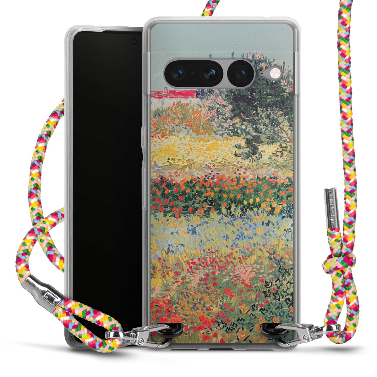 The flexible case is made from a highquality TPU material (thermoplastic Polyurethan). Thanks to its longlasting and break resistant characterisitcs, the case is flexible yet consistent in form and has a great grip and feel. The textile strap made from Polyester gives a chic yet casual accent allowing you to carry your phone like a bag or necklace - a practical gadget perfect for your next adventure. The textile strap is about 1.70 meters long and the length can easily be adjusted through the knots. Our Carry Case is available in Colourful, Mint-Camouflage, Very-Berry, Sahara-Sand and Sparkling-Neon. The ends of the textile strap are covered with metallic end caps to protect them against fraying.