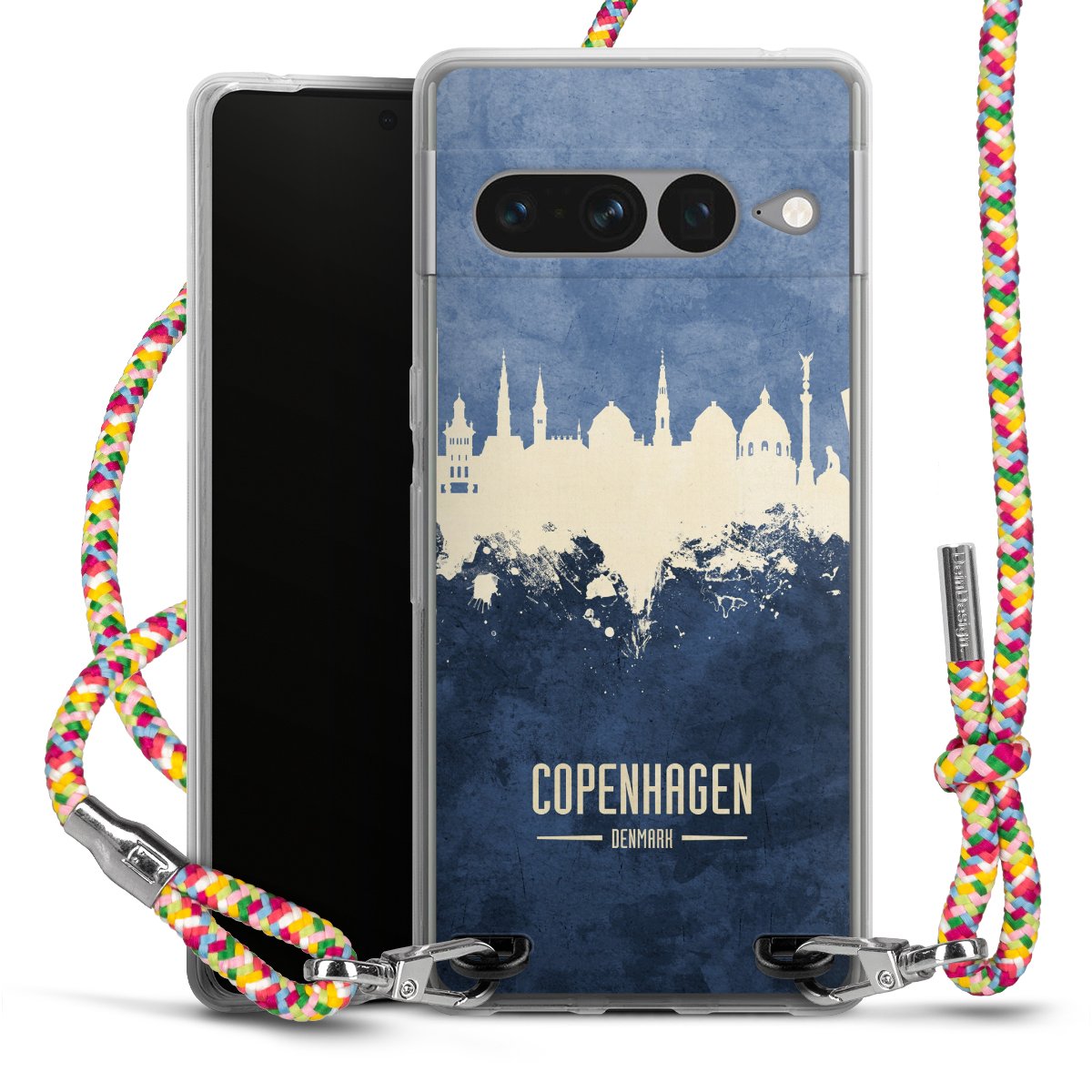 The flexible case is made from a highquality TPU material (thermoplastic Polyurethan). Thanks to its longlasting and break resistant characterisitcs, the case is flexible yet consistent in form and has a great grip and feel. The textile strap made from Polyester gives a chic yet casual accent allowing you to carry your phone like a bag or necklace - a practical gadget perfect for your next adventure. The textile strap is about 1.70 meters long and the length can easily be adjusted through the knots. Our Carry Case is available in Colourful, Mint-Camouflage, Very-Berry, Sahara-Sand and Sparkling-Neon. The ends of the textile strap are covered with metallic end caps to protect them against fraying.