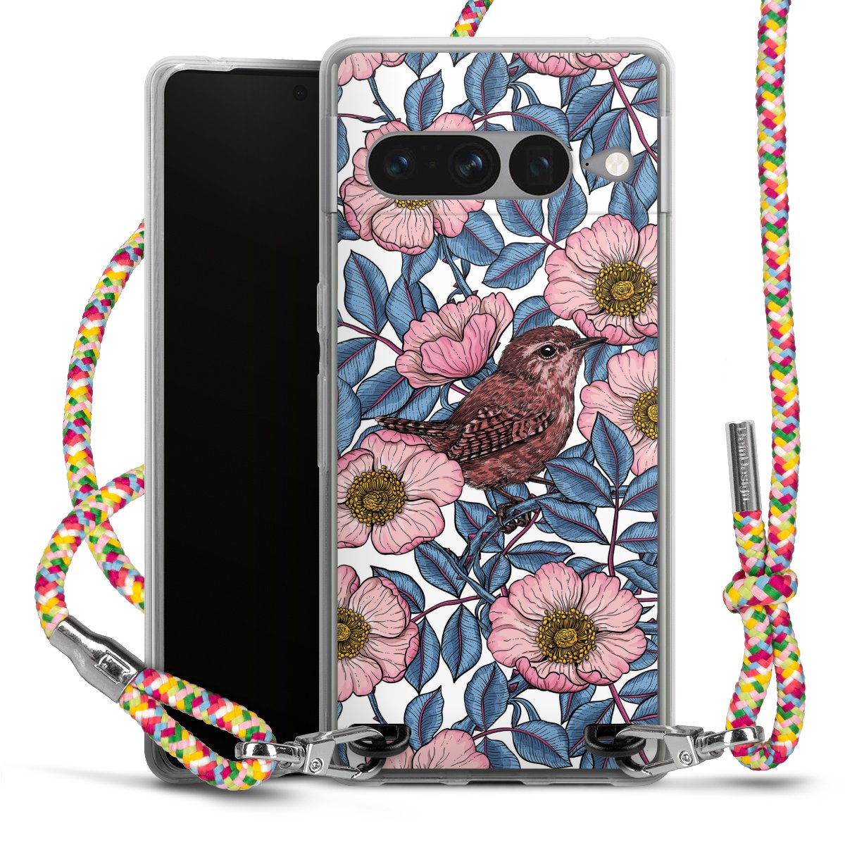 The flexible case is made from a highquality TPU material (thermoplastic Polyurethan). Thanks to its longlasting and break resistant characterisitcs, the case is flexible yet consistent in form and has a great grip and feel. The textile strap made from Polyester gives a chic yet casual accent allowing you to carry your phone like a bag or necklace - a practical gadget perfect for your next adventure. The textile strap is about 1.70 meters long and the length can easily be adjusted through the knots. Our Carry Case is available in Colourful, Mint-Camouflage, Very-Berry, Sahara-Sand and Sparkling-Neon. The ends of the textile strap are covered with metallic end caps to protect them against fraying.