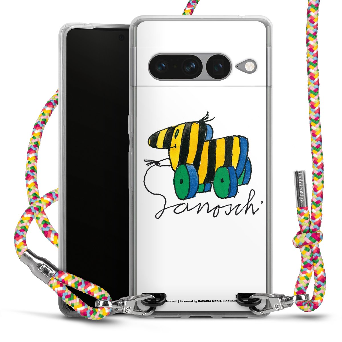 The flexible case is made from a highquality TPU material (thermoplastic Polyurethan). Thanks to its longlasting and break resistant characterisitcs, the case is flexible yet consistent in form and has a great grip and feel. The textile strap made from Polyester gives a chic yet casual accent allowing you to carry your phone like a bag or necklace - a practical gadget perfect for your next adventure. The textile strap is about 1.70 meters long and the length can easily be adjusted through the knots. Our Carry Case is available in Colourful, Mint-Camouflage, Very-Berry, Sahara-Sand and Sparkling-Neon. The ends of the textile strap are covered with metallic end caps to protect them against fraying.
