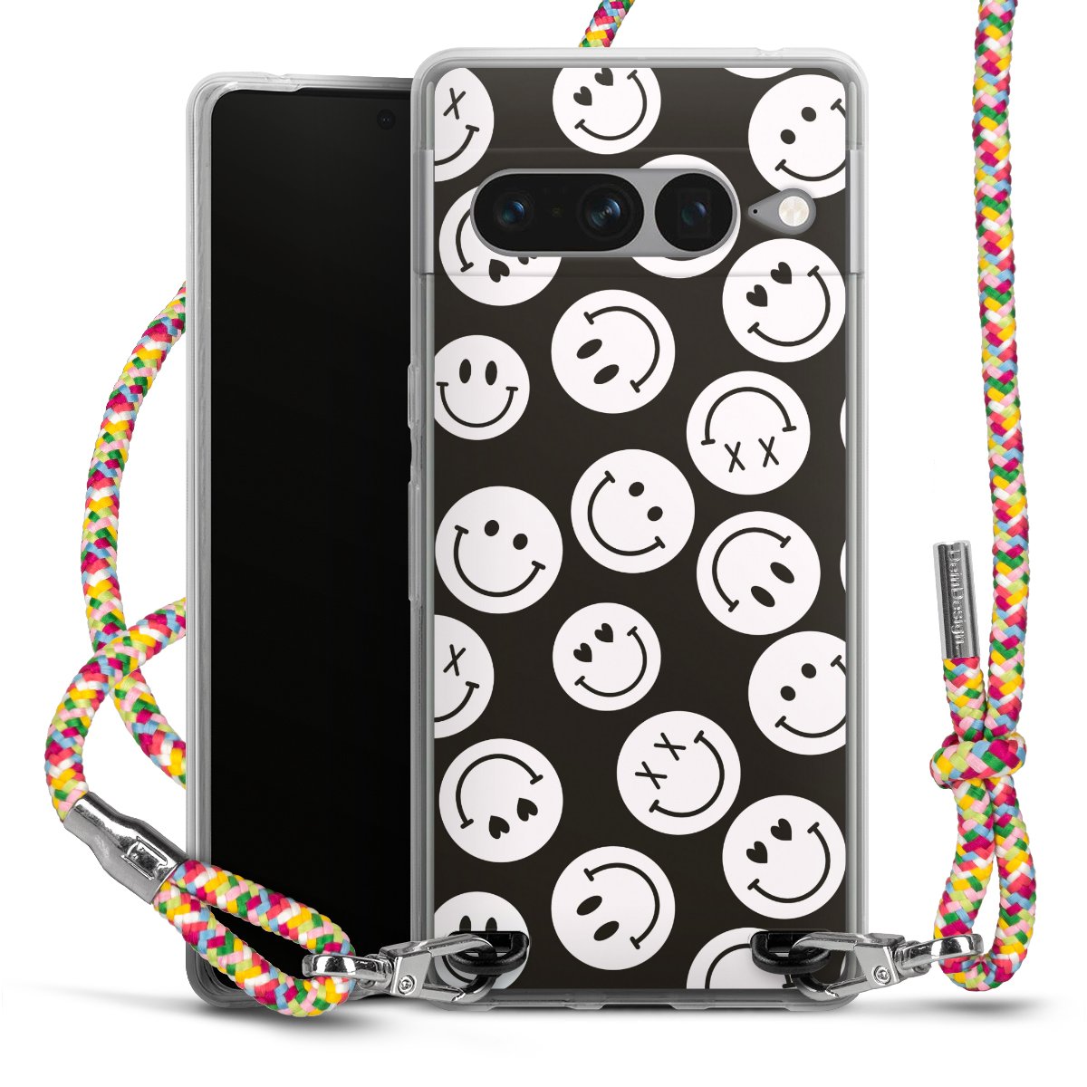 The flexible case is made from a highquality TPU material (thermoplastic Polyurethan). Thanks to its longlasting and break resistant characterisitcs, the case is flexible yet consistent in form and has a great grip and feel. The textile strap made from Polyester gives a chic yet casual accent allowing you to carry your phone like a bag or necklace - a practical gadget perfect for your next adventure. The textile strap is about 1.70 meters long and the length can easily be adjusted through the knots. Our Carry Case is available in Colourful, Mint-Camouflage, Very-Berry, Sahara-Sand and Sparkling-Neon. The ends of the textile strap are covered with metallic end caps to protect them against fraying.