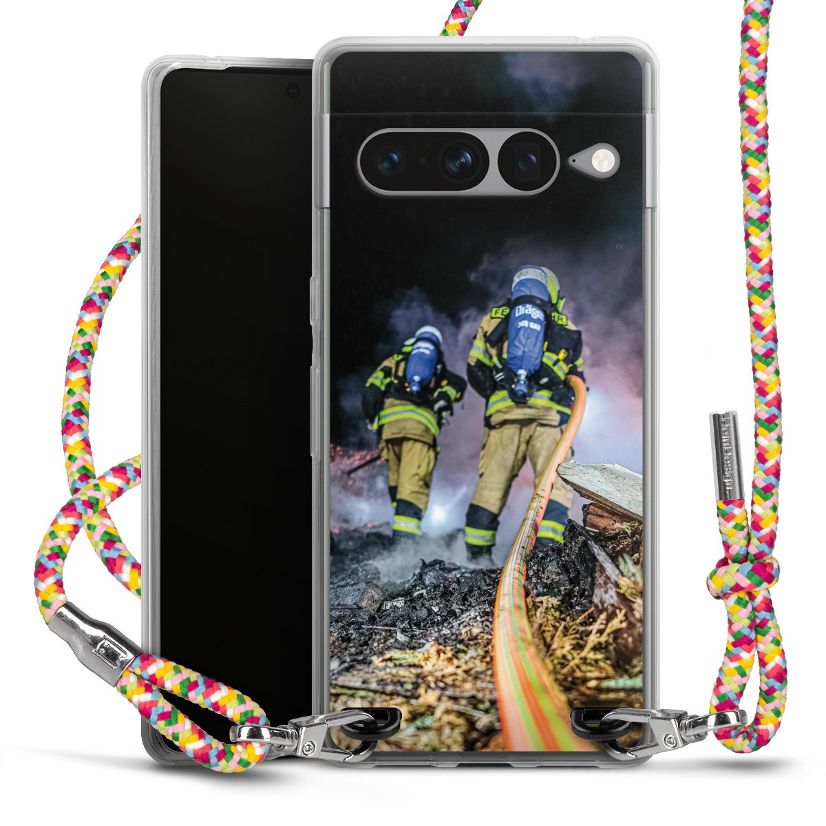 The flexible case is made from a highquality TPU material (thermoplastic Polyurethan). Thanks to its longlasting and break resistant characterisitcs, the case is flexible yet consistent in form and has a great grip and feel. The textile strap made from Polyester gives a chic yet casual accent allowing you to carry your phone like a bag or necklace - a practical gadget perfect for your next adventure. The textile strap is about 1.70 meters long and the length can easily be adjusted through the knots. Our Carry Case is available in Colourful, Mint-Camouflage, Very-Berry, Sahara-Sand and Sparkling-Neon. The ends of the textile strap are covered with metallic end caps to protect them against fraying.