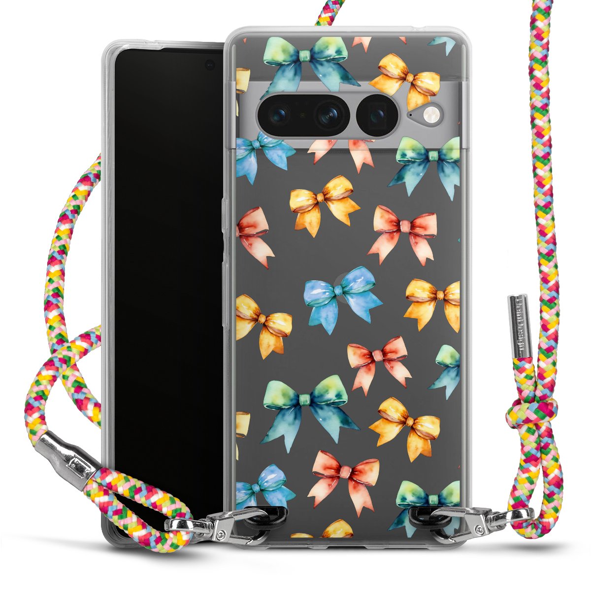 The flexible case is made from a highquality TPU material (thermoplastic Polyurethan). Thanks to its longlasting and break resistant characterisitcs, the case is flexible yet consistent in form and has a great grip and feel. The textile strap made from Polyester gives a chic yet casual accent allowing you to carry your phone like a bag or necklace - a practical gadget perfect for your next adventure. The textile strap is about 1.70 meters long and the length can easily be adjusted through the knots. Our Carry Case is available in Colourful, Mint-Camouflage, Very-Berry, Sahara-Sand and Sparkling-Neon. The ends of the textile strap are covered with metallic end caps to protect them against fraying.