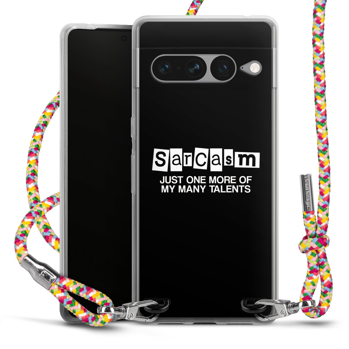 The flexible case is made from a highquality TPU material (thermoplastic Polyurethan). Thanks to its longlasting and break resistant characterisitcs, the case is flexible yet consistent in form and has a great grip and feel. The textile strap made from Polyester gives a chic yet casual accent allowing you to carry your phone like a bag or necklace - a practical gadget perfect for your next adventure. The textile strap is about 1.70 meters long and the length can easily be adjusted through the knots. Our Carry Case is available in Colourful, Mint-Camouflage, Very-Berry, Sahara-Sand and Sparkling-Neon. The ends of the textile strap are covered with metallic end caps to protect them against fraying.