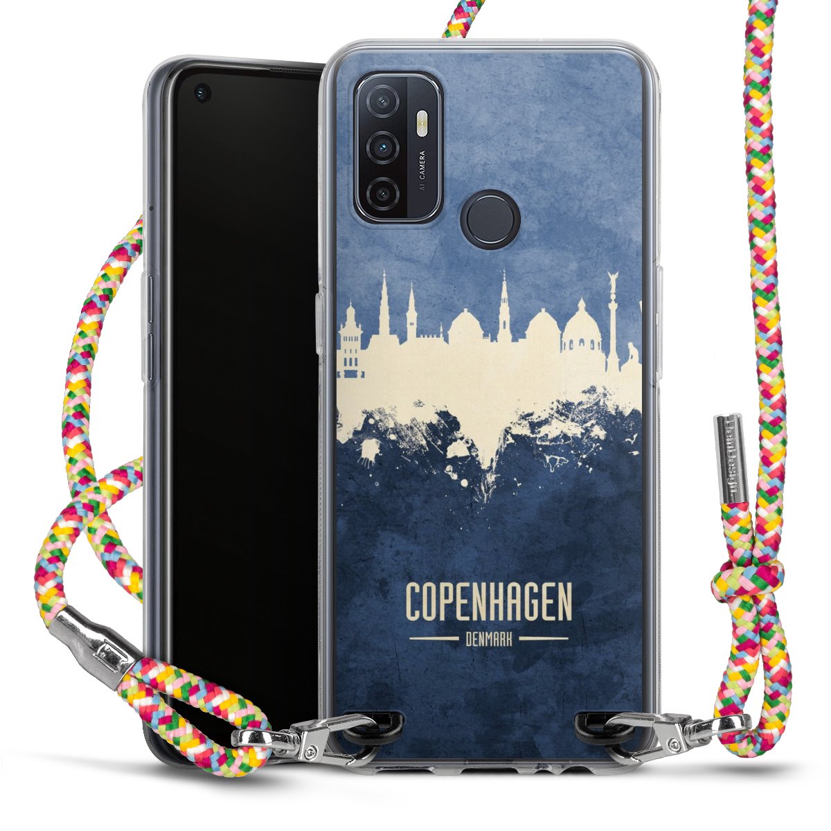 The flexible case is made from a highquality TPU material (thermoplastic Polyurethan). Thanks to its longlasting and break resistant characterisitcs, the case is flexible yet consistent in form and has a great grip and feel. The textile strap made from Polyester gives a chic yet casual accent allowing you to carry your phone like a bag or necklace - a practical gadget perfect for your next adventure. The textile strap is about 1.70 meters long and the length can easily be adjusted through the knots. Our Carry Case is available in Colourful, Mint-Camouflage, Very-Berry, Sahara-Sand and Sparkling-Neon. The ends of the textile strap are covered with metallic end caps to protect them against fraying.