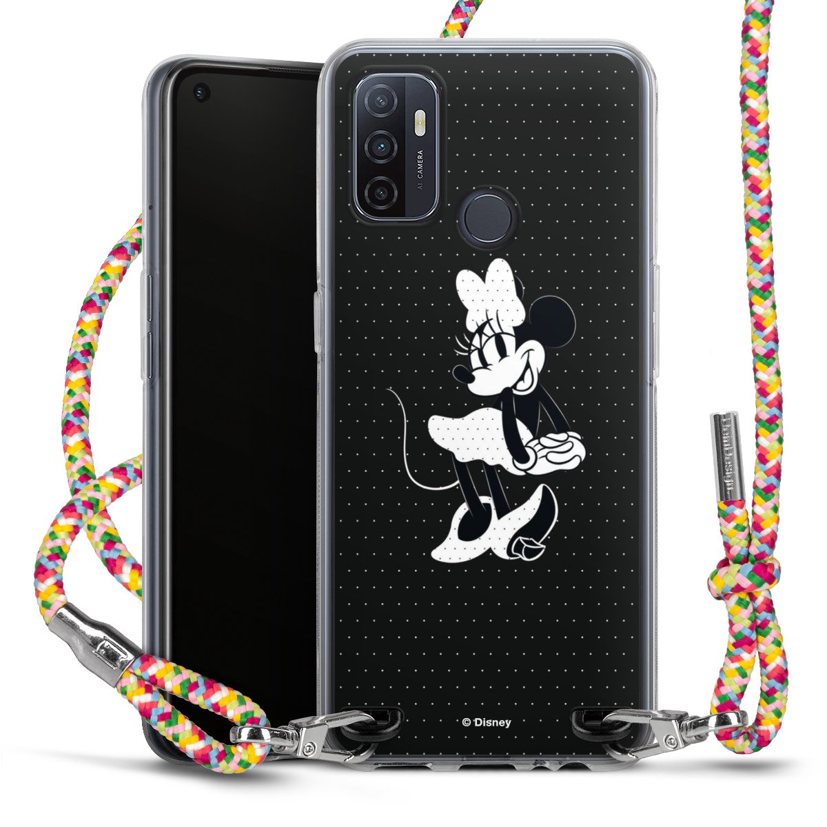 The flexible case is made from a highquality TPU material (thermoplastic Polyurethan). Thanks to its longlasting and break resistant characterisitcs, the case is flexible yet consistent in form and has a great grip and feel. The textile strap made from Polyester gives a chic yet casual accent allowing you to carry your phone like a bag or necklace - a practical gadget perfect for your next adventure. The textile strap is about 1.70 meters long and the length can easily be adjusted through the knots. Our Carry Case is available in Colourful, Mint-Camouflage, Very-Berry, Sahara-Sand and Sparkling-Neon. The ends of the textile strap are covered with metallic end caps to protect them against fraying.