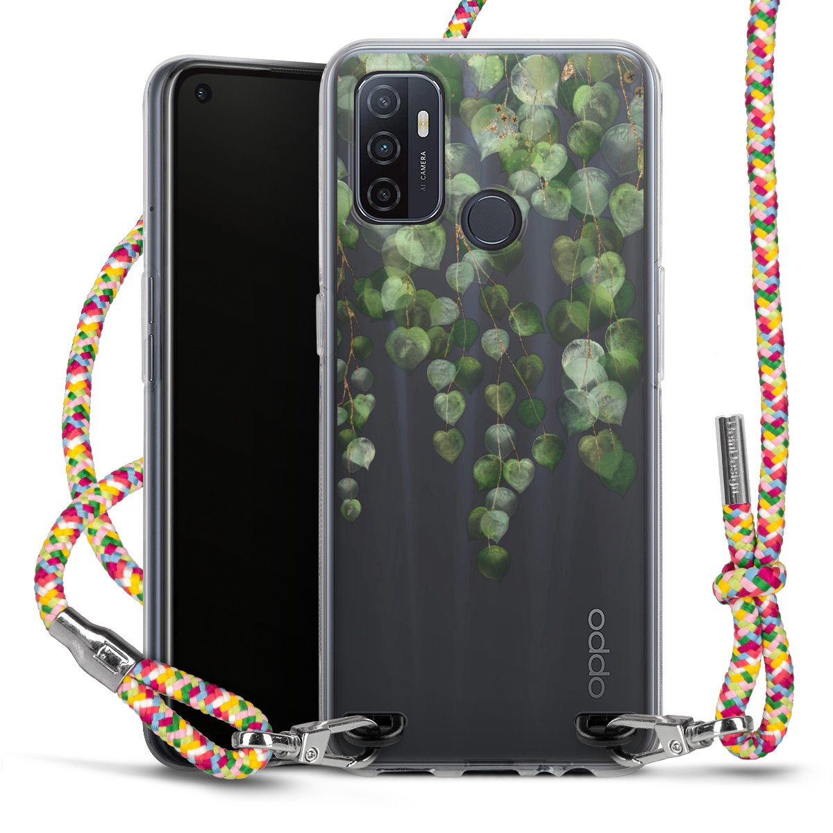 The flexible case is made from a highquality TPU material (thermoplastic Polyurethan). Thanks to its longlasting and break resistant characterisitcs, the case is flexible yet consistent in form and has a great grip and feel. The textile strap made from Polyester gives a chic yet casual accent allowing you to carry your phone like a bag or necklace - a practical gadget perfect for your next adventure. The textile strap is about 1.70 meters long and the length can easily be adjusted through the knots. Our Carry Case is available in Colourful, Mint-Camouflage, Very-Berry, Sahara-Sand and Sparkling-Neon. The ends of the textile strap are covered with metallic end caps to protect them against fraying.