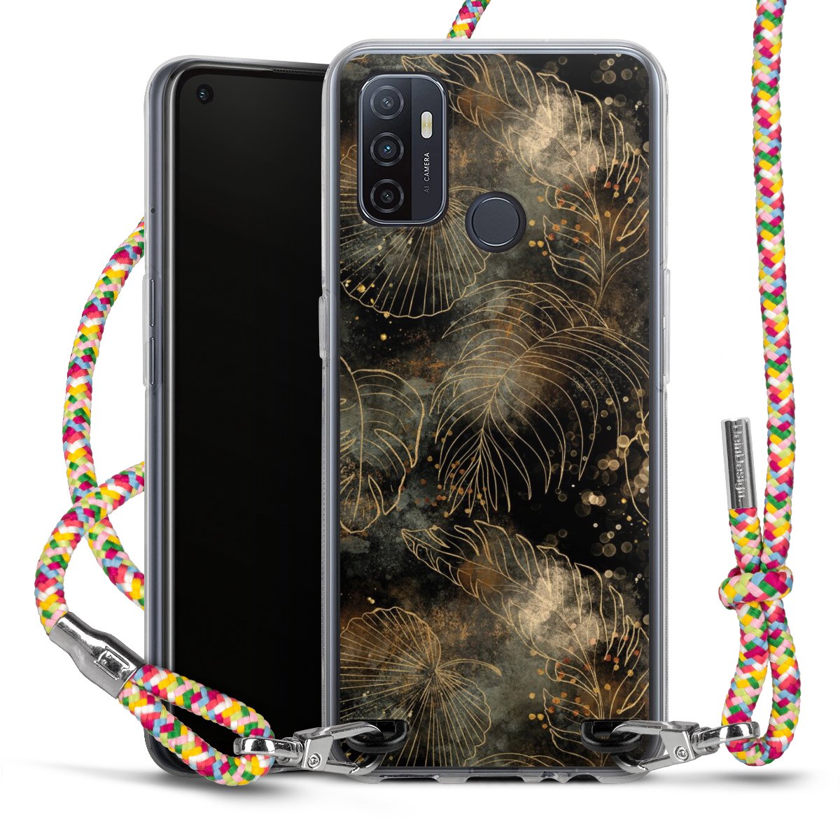 The flexible case is made from a highquality TPU material (thermoplastic Polyurethan). Thanks to its longlasting and break resistant characterisitcs, the case is flexible yet consistent in form and has a great grip and feel. The textile strap made from Polyester gives a chic yet casual accent allowing you to carry your phone like a bag or necklace - a practical gadget perfect for your next adventure. The textile strap is about 1.70 meters long and the length can easily be adjusted through the knots. Our Carry Case is available in Colourful, Mint-Camouflage, Very-Berry, Sahara-Sand and Sparkling-Neon. The ends of the textile strap are covered with metallic end caps to protect them against fraying.