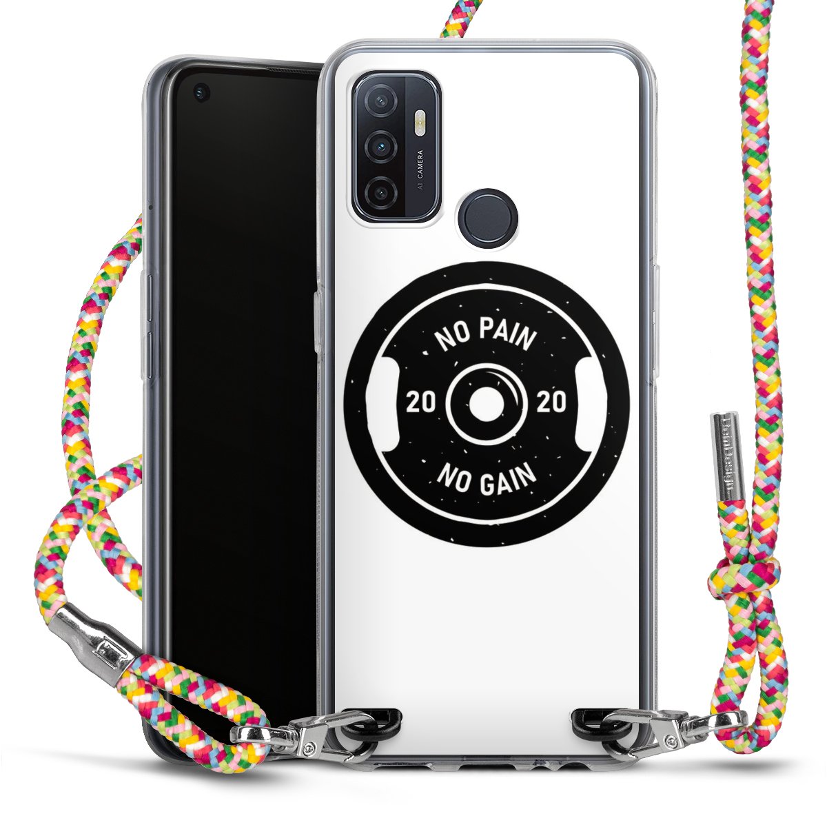 The flexible case is made from a highquality TPU material (thermoplastic Polyurethan). Thanks to its longlasting and break resistant characterisitcs, the case is flexible yet consistent in form and has a great grip and feel. The textile strap made from Polyester gives a chic yet casual accent allowing you to carry your phone like a bag or necklace - a practical gadget perfect for your next adventure. The textile strap is about 1.70 meters long and the length can easily be adjusted through the knots. Our Carry Case is available in Colourful, Mint-Camouflage, Very-Berry, Sahara-Sand and Sparkling-Neon. The ends of the textile strap are covered with metallic end caps to protect them against fraying.
