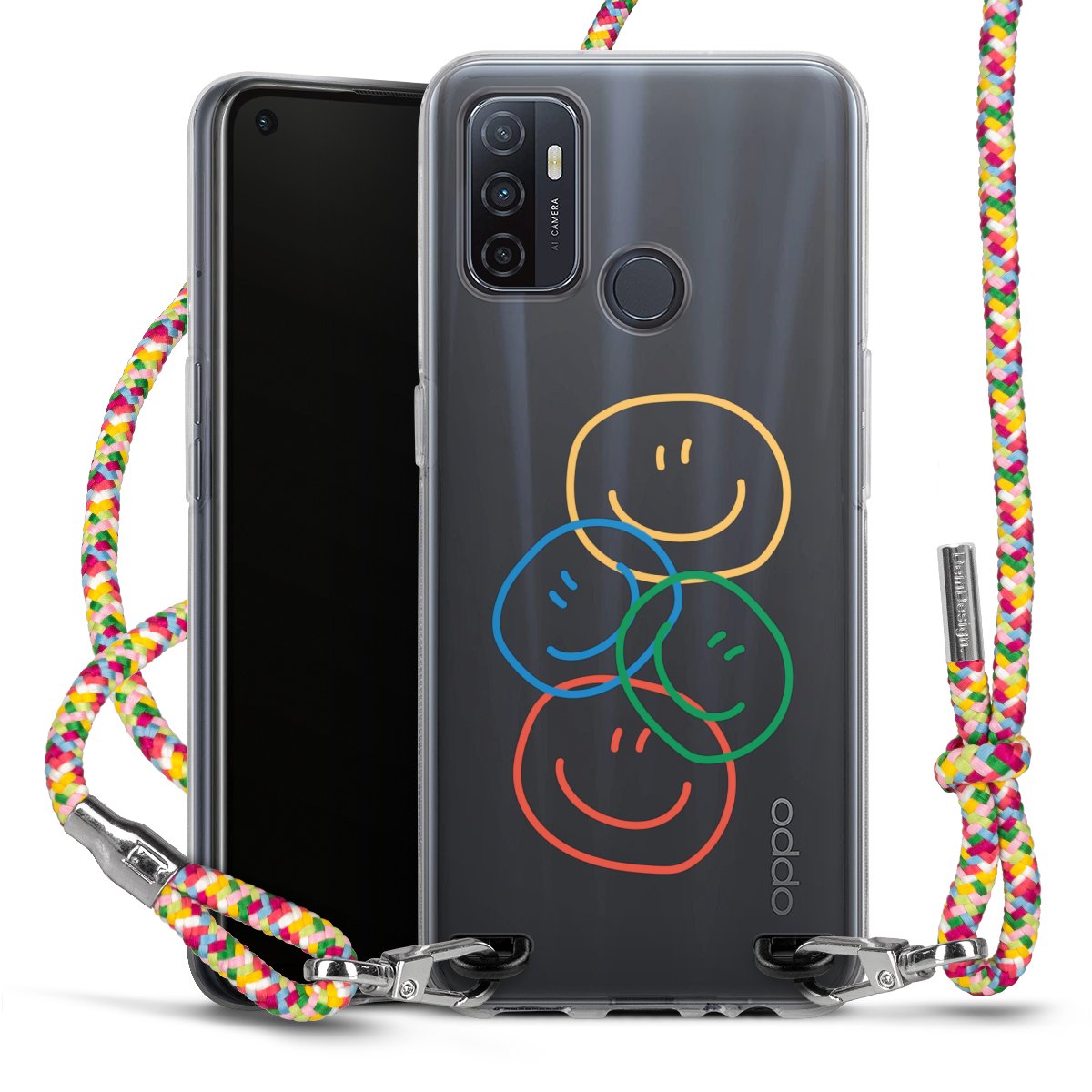 The flexible case is made from a highquality TPU material (thermoplastic Polyurethan). Thanks to its longlasting and break resistant characterisitcs, the case is flexible yet consistent in form and has a great grip and feel. The textile strap made from Polyester gives a chic yet casual accent allowing you to carry your phone like a bag or necklace - a practical gadget perfect for your next adventure. The textile strap is about 1.70 meters long and the length can easily be adjusted through the knots. Our Carry Case is available in Colourful, Mint-Camouflage, Very-Berry, Sahara-Sand and Sparkling-Neon. The ends of the textile strap are covered with metallic end caps to protect them against fraying.