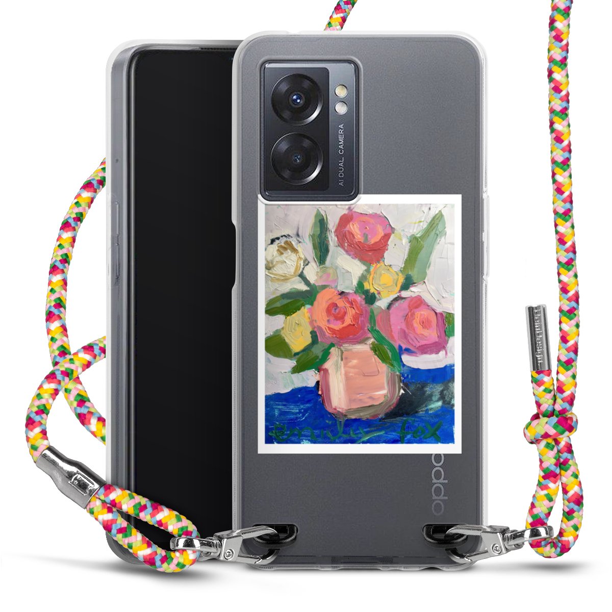 The flexible case is made from a highquality TPU material (thermoplastic Polyurethan). Thanks to its longlasting and break resistant characterisitcs, the case is flexible yet consistent in form and has a great grip and feel. The textile strap made from Polyester gives a chic yet casual accent allowing you to carry your phone like a bag or necklace - a practical gadget perfect for your next adventure. The textile strap is about 1.70 meters long and the length can easily be adjusted through the knots. Our Carry Case is available in Colourful, Mint-Camouflage, Very-Berry, Sahara-Sand and Sparkling-Neon. The ends of the textile strap are covered with metallic end caps to protect them against fraying.
