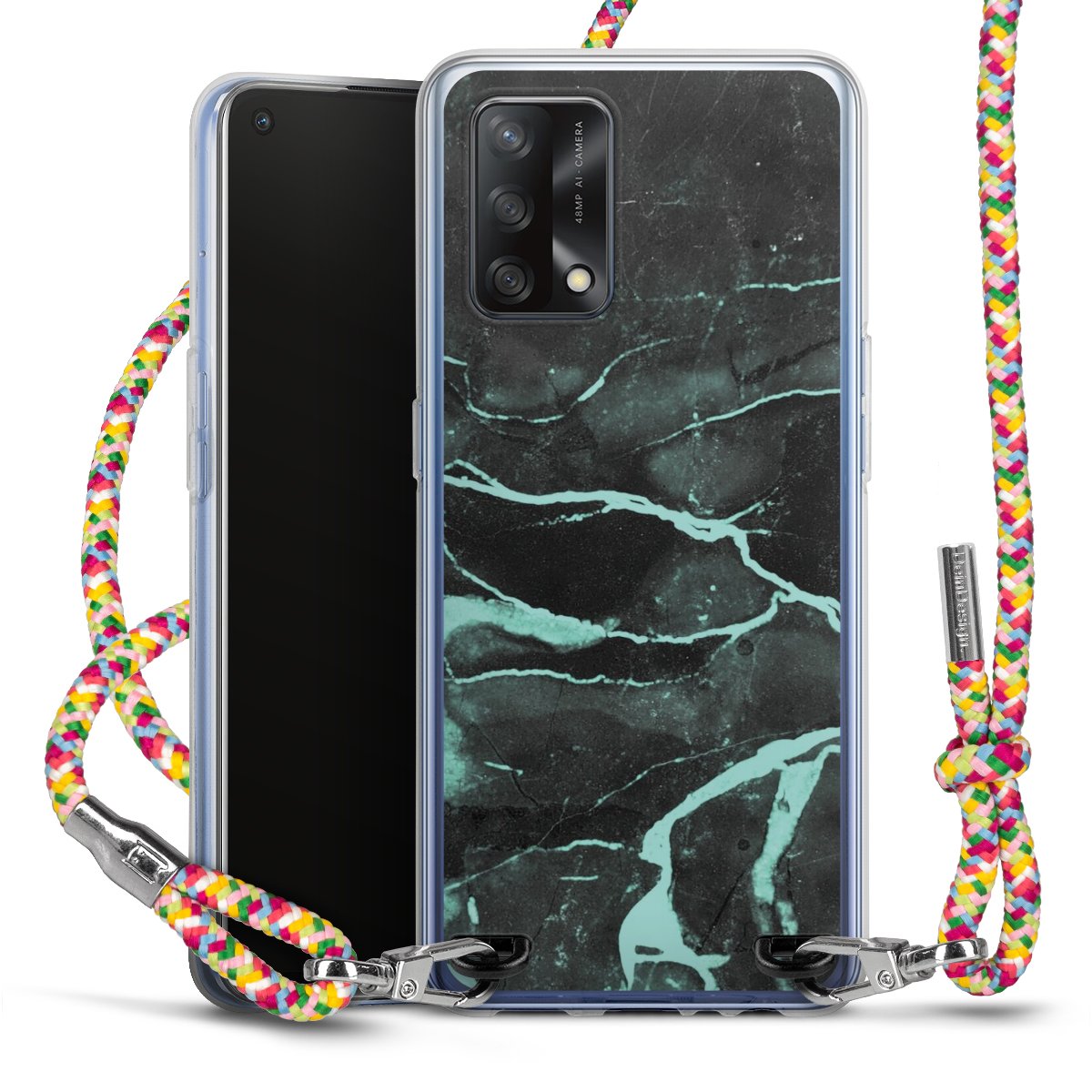 The flexible case is made from a highquality TPU material (thermoplastic Polyurethan). Thanks to its longlasting and break resistant characterisitcs, the case is flexible yet consistent in form and has a great grip and feel. The textile strap made from Polyester gives a chic yet casual accent allowing you to carry your phone like a bag or necklace - a practical gadget perfect for your next adventure. The textile strap is about 1.70 meters long and the length can easily be adjusted through the knots. Our Carry Case is available in Colourful, Mint-Camouflage, Very-Berry, Sahara-Sand and Sparkling-Neon. The ends of the textile strap are covered with metallic end caps to protect them against fraying.