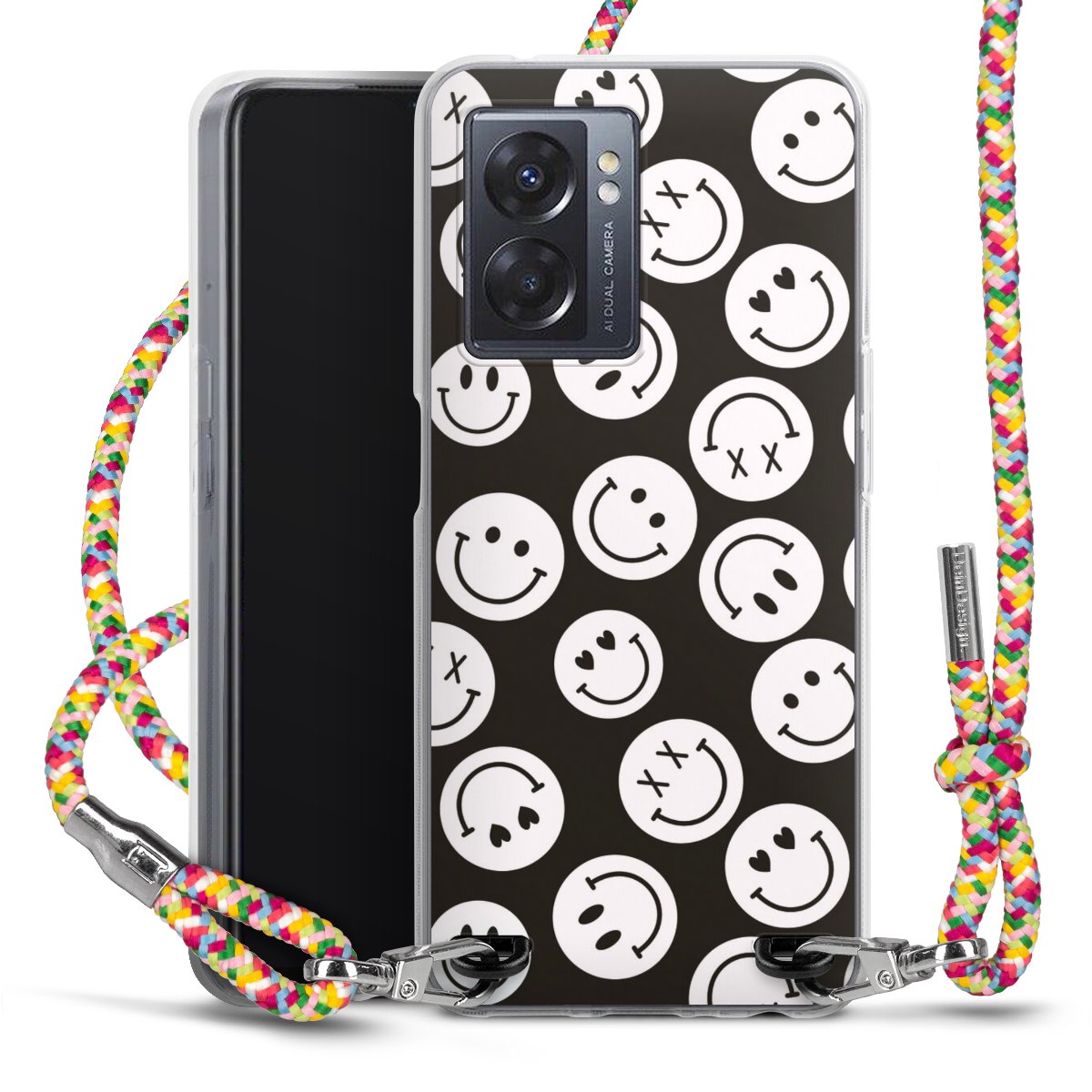 The flexible case is made from a highquality TPU material (thermoplastic Polyurethan). Thanks to its longlasting and break resistant characterisitcs, the case is flexible yet consistent in form and has a great grip and feel. The textile strap made from Polyester gives a chic yet casual accent allowing you to carry your phone like a bag or necklace - a practical gadget perfect for your next adventure. The textile strap is about 1.70 meters long and the length can easily be adjusted through the knots. Our Carry Case is available in Colourful, Mint-Camouflage, Very-Berry, Sahara-Sand and Sparkling-Neon. The ends of the textile strap are covered with metallic end caps to protect them against fraying.