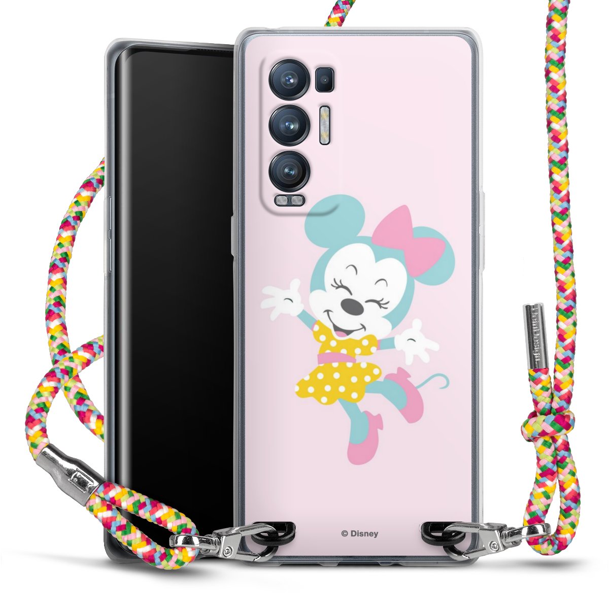 The flexible case is made from a highquality TPU material (thermoplastic Polyurethan). Thanks to its longlasting and break resistant characterisitcs, the case is flexible yet consistent in form and has a great grip and feel. The textile strap made from Polyester gives a chic yet casual accent allowing you to carry your phone like a bag or necklace - a practical gadget perfect for your next adventure. The textile strap is about 1.70 meters long and the length can easily be adjusted through the knots. Our Carry Case is available in Colourful, Mint-Camouflage, Very-Berry, Sahara-Sand and Sparkling-Neon. The ends of the textile strap are covered with metallic end caps to protect them against fraying.