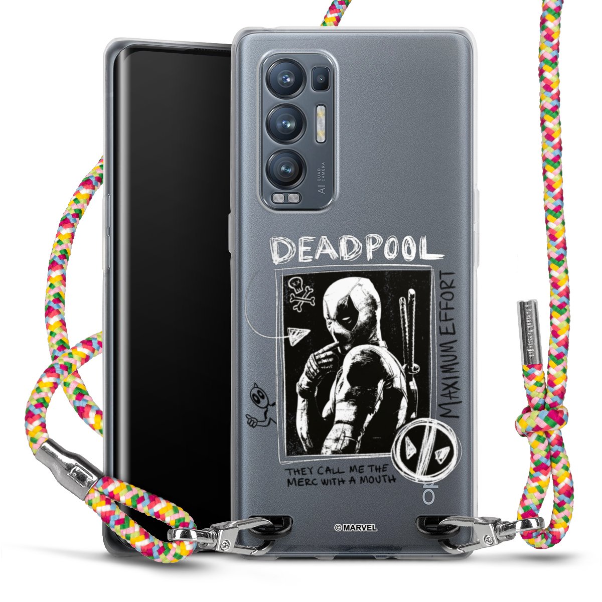 The flexible case is made from a highquality TPU material (thermoplastic Polyurethan). Thanks to its longlasting and break resistant characterisitcs, the case is flexible yet consistent in form and has a great grip and feel. The textile strap made from Polyester gives a chic yet casual accent allowing you to carry your phone like a bag or necklace - a practical gadget perfect for your next adventure. The textile strap is about 1.70 meters long and the length can easily be adjusted through the knots. Our Carry Case is available in Colourful, Mint-Camouflage, Very-Berry, Sahara-Sand and Sparkling-Neon. The ends of the textile strap are covered with metallic end caps to protect them against fraying.