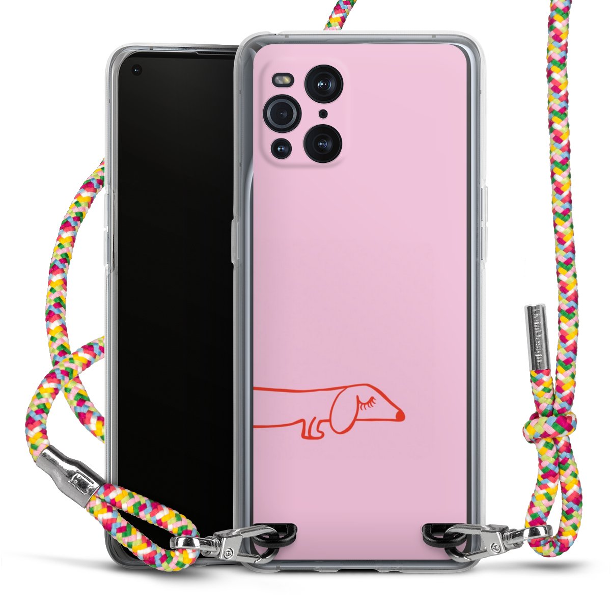 The flexible case is made from a highquality TPU material (thermoplastic Polyurethan). Thanks to its longlasting and break resistant characterisitcs, the case is flexible yet consistent in form and has a great grip and feel. The textile strap made from Polyester gives a chic yet casual accent allowing you to carry your phone like a bag or necklace - a practical gadget perfect for your next adventure. The textile strap is about 1.70 meters long and the length can easily be adjusted through the knots. Our Carry Case is available in Colourful, Mint-Camouflage, Very-Berry, Sahara-Sand and Sparkling-Neon. The ends of the textile strap are covered with metallic end caps to protect them against fraying.