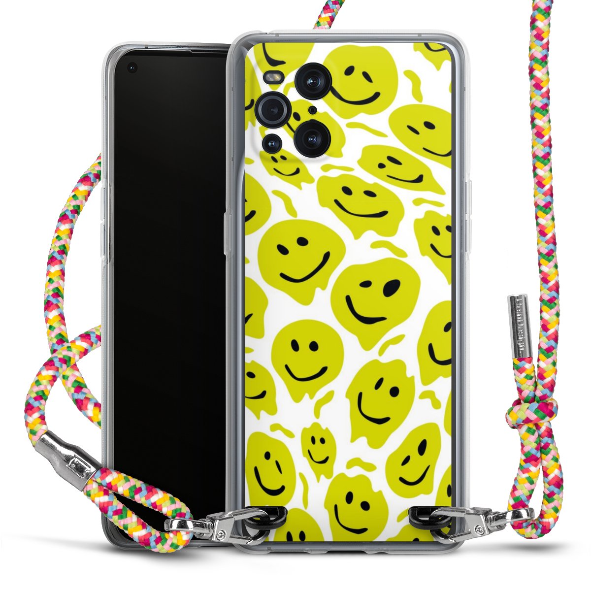 The flexible case is made from a highquality TPU material (thermoplastic Polyurethan). Thanks to its longlasting and break resistant characterisitcs, the case is flexible yet consistent in form and has a great grip and feel. The textile strap made from Polyester gives a chic yet casual accent allowing you to carry your phone like a bag or necklace - a practical gadget perfect for your next adventure. The textile strap is about 1.70 meters long and the length can easily be adjusted through the knots. Our Carry Case is available in Colourful, Mint-Camouflage, Very-Berry, Sahara-Sand and Sparkling-Neon. The ends of the textile strap are covered with metallic end caps to protect them against fraying.