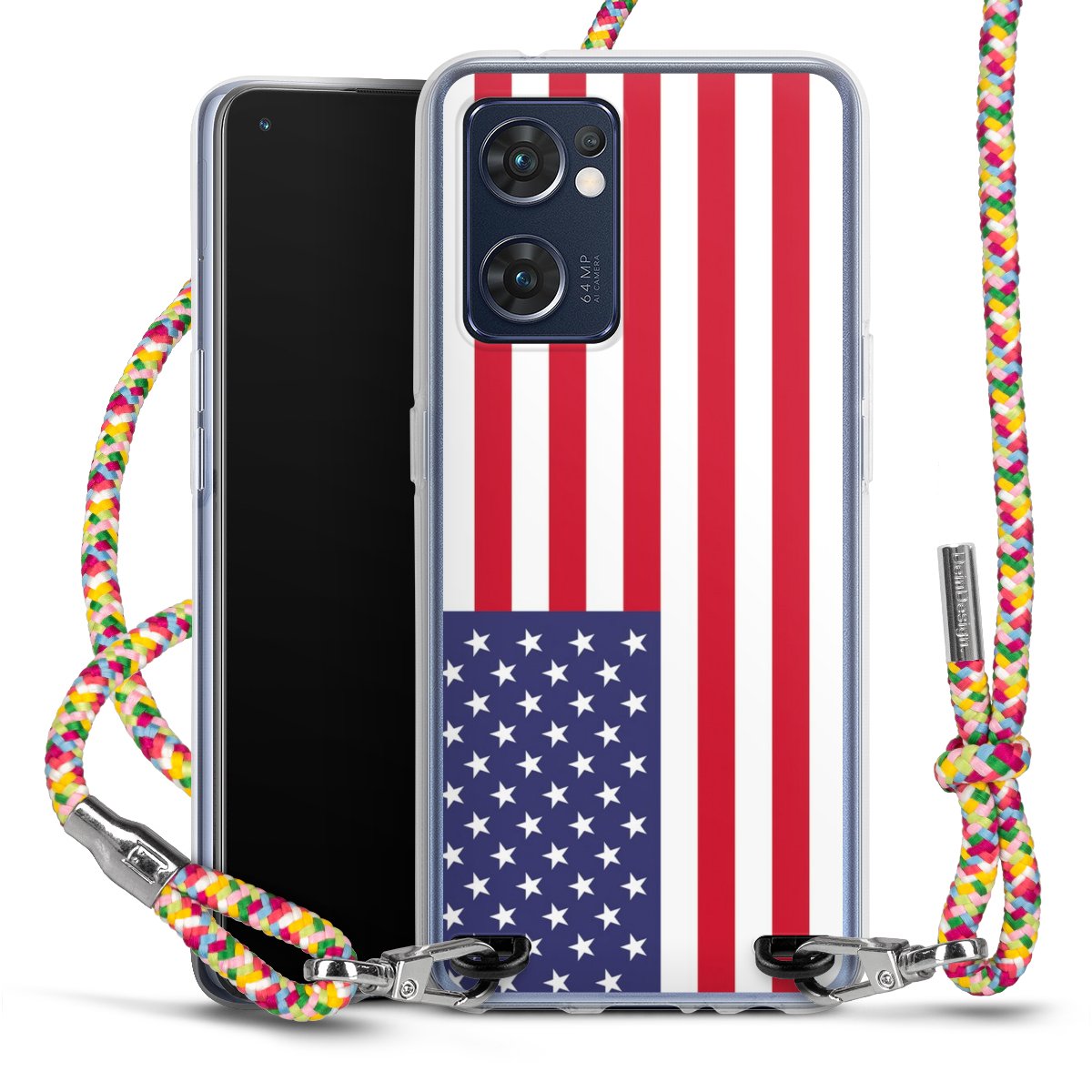 The flexible case is made from a highquality TPU material (thermoplastic Polyurethan). Thanks to its longlasting and break resistant characterisitcs, the case is flexible yet consistent in form and has a great grip and feel. The textile strap made from Polyester gives a chic yet casual accent allowing you to carry your phone like a bag or necklace - a practical gadget perfect for your next adventure. The textile strap is about 1.70 meters long and the length can easily be adjusted through the knots. Our Carry Case is available in Colourful, Mint-Camouflage, Very-Berry, Sahara-Sand and Sparkling-Neon. The ends of the textile strap are covered with metallic end caps to protect them against fraying.