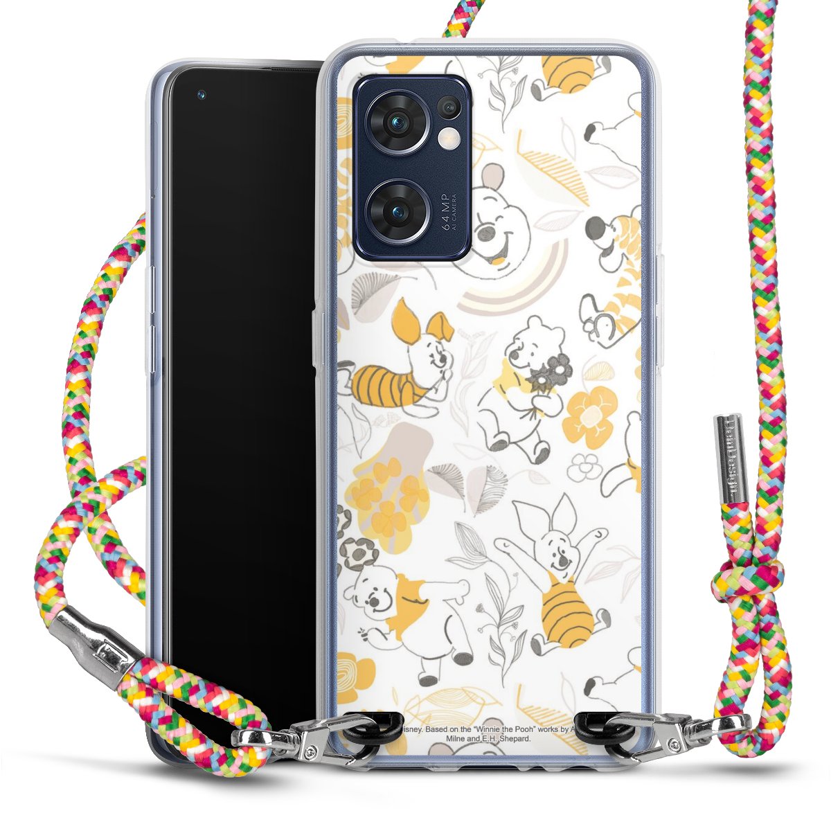 The flexible case is made from a highquality TPU material (thermoplastic Polyurethan). Thanks to its longlasting and break resistant characterisitcs, the case is flexible yet consistent in form and has a great grip and feel. The textile strap made from Polyester gives a chic yet casual accent allowing you to carry your phone like a bag or necklace - a practical gadget perfect for your next adventure. The textile strap is about 1.70 meters long and the length can easily be adjusted through the knots. Our Carry Case is available in Colourful, Mint-Camouflage, Very-Berry, Sahara-Sand and Sparkling-Neon. The ends of the textile strap are covered with metallic end caps to protect them against fraying.
