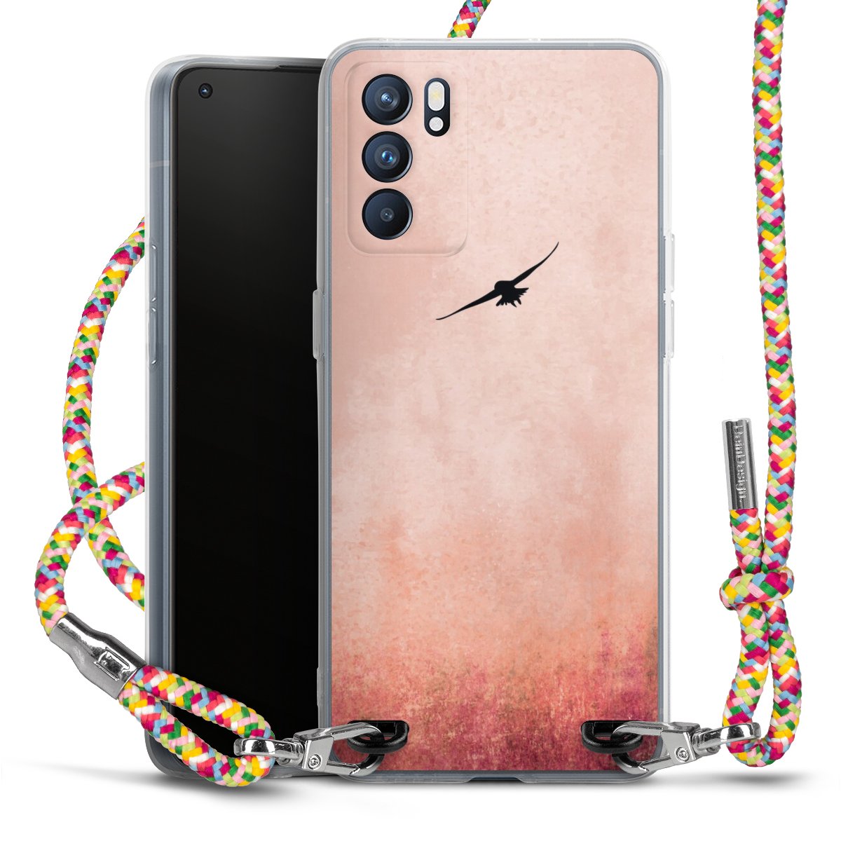 The flexible case is made from a highquality TPU material (thermoplastic Polyurethan). Thanks to its longlasting and break resistant characterisitcs, the case is flexible yet consistent in form and has a great grip and feel. The textile strap made from Polyester gives a chic yet casual accent allowing you to carry your phone like a bag or necklace - a practical gadget perfect for your next adventure. The textile strap is about 1.70 meters long and the length can easily be adjusted through the knots. Our Carry Case is available in Colourful, Mint-Camouflage, Very-Berry, Sahara-Sand and Sparkling-Neon. The ends of the textile strap are covered with metallic end caps to protect them against fraying.